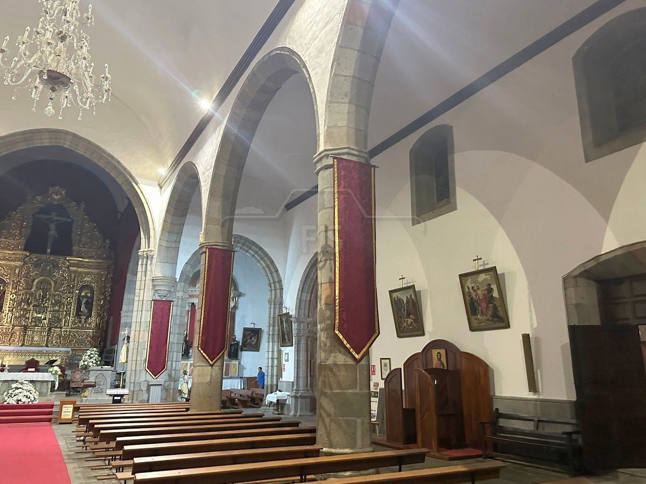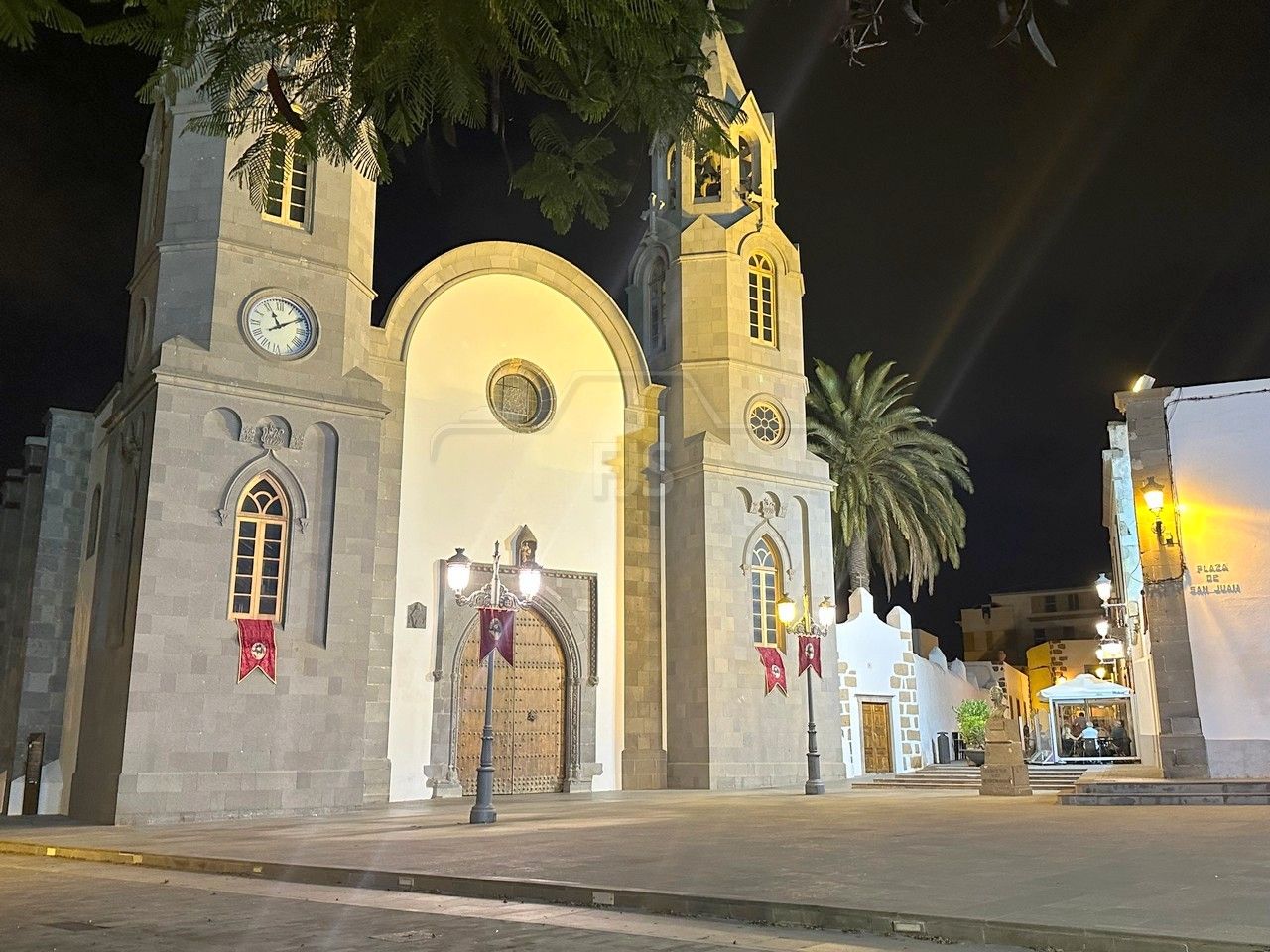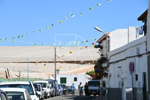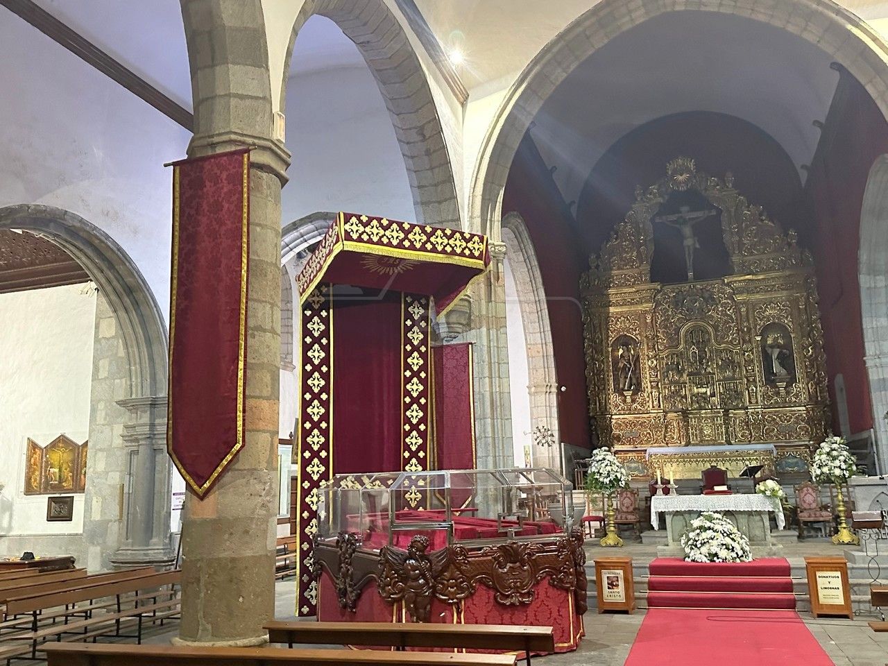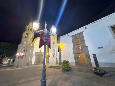 Telde no puede disimular que no está en fiestas. Los faldones, que han sido instalados por la propia Parroquia de San Juan mediante sus colaboradores y voluntarios, transmiten a la ciudadanía teldense y a sus visitantes que la ciudad celebra la bajada del Santo Cristo, su posterior procesión y el 22 de septiembre su regreso a la hornacina del Altar Mayor.