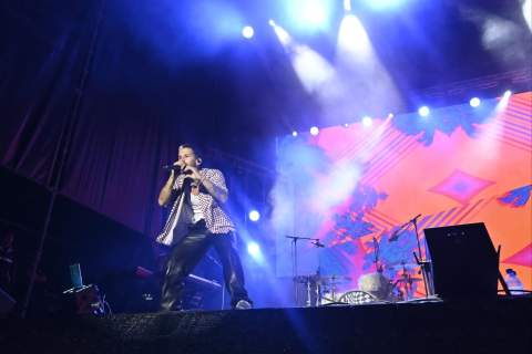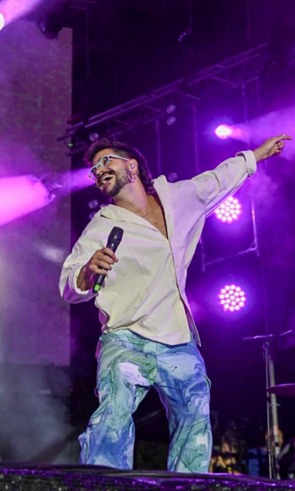 El cantante y compositor colombiano Camilo apareció por sorpresa a la fiesta de Mau y Ricky en la noche de este sábado en Teror. Lo hizo de la mano del productor teldense Juanfra Suárez.