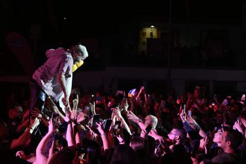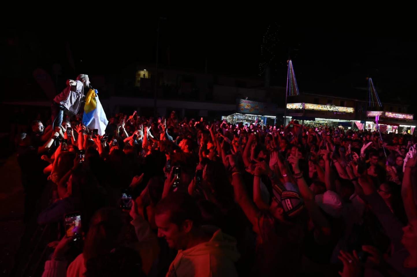 El popular artista se sumó de manera inesperada a la velada musical en la Plaza de Sintes, a tope de público, donde también estuvieron ‘Wos Las Palmas’, ‘Alen GC’, ‘Dj Day B’, ‘Tony Bob’.