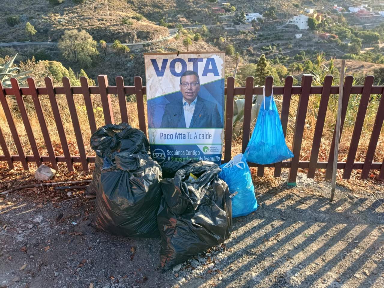 “El nuevo gobierno parece que tiene otras prioridades”, por lo que los vecinos han decido protestar limpiando, llegando a recolectar unas cinco bolsas grandes de basura y hasta un cartel del actual alcalde que estaba tirado en el un terraplén junto con otros enseres. “Esto es una muestra palpable de la despreocupación del alcalde Francisco Atta con este barrio, sus vecinos y su entorno. Lamentable trato y peor ejemplo con la retirada de propaganda electoral’, añaden.