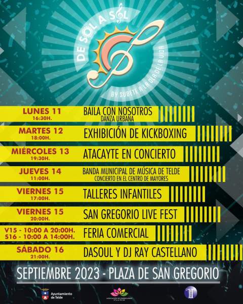 De Sol a Sol se estrena esta semana en Telde con un programa cargado de actividades y cuyo epicentro estará situado en la plaza de San Gregorio. Este proyecto, enmarcado dentro del plan Súbete a la Ola de la Vida, persigue el objetivo de “dinamizar el casco comercial como nunca antes se había hecho”, indica el alcalde de la ciudad, Juan Antonio Peña. “El propósito del Gobierno es atraer a la gente al centro de la ciudad con talleres para los más jóvenes y con conciertos en vivo de grandes artistas canarios de repercusión internacional”, agrega.