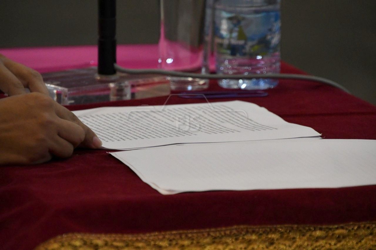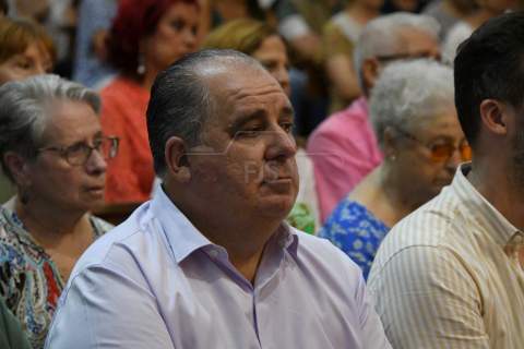 El pregón comenzó pasadas las 20.00 horas con la asistencia de un nutrido grupo de fieles que llenaban el templo y una amplia representación de la Corporación municipal encabezada por el alcalde Juan Antonio Peña.