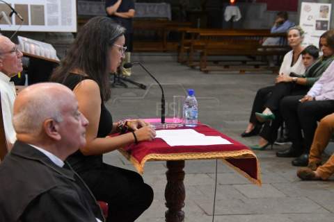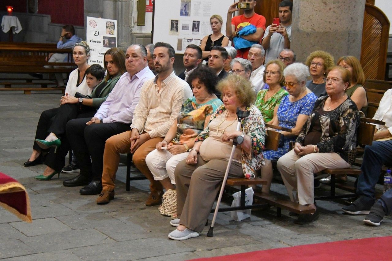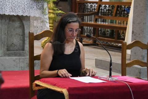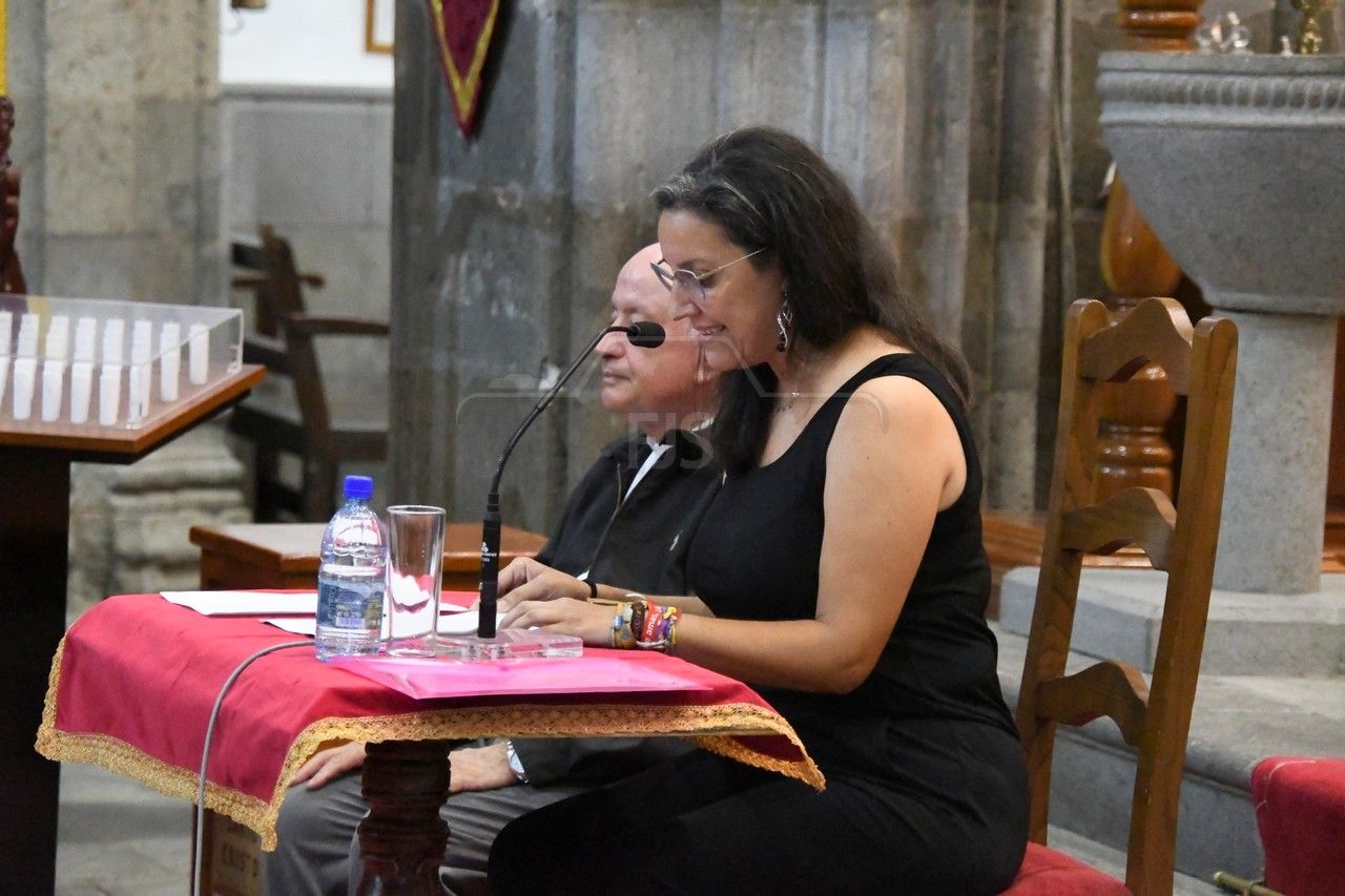 Luz Belinda Medina Ramírez, natural de Telde y vecina del barrio de San Antonio, compartió con los asistentes sus vivencias y experiencias más íntimas ante la imagen del Santo Cristo. Una efigie de incalculable valor artístico y espiritual, modelada a base de pasta de millo y cuya autoría se atribuye a los indios tarascos de México, aproximadamente sobre el año 1555, en el taller de Matías de la Cerda. Y a la que la pregonera está muy unida ya que, prácticamente, desde que nació forma parte de la parroquia y desde el año 1993 imparte catequesis a los jóvenes de la misma. Además, de licenciada en Estudios Eclesiásticos por la Facultad de Teología del Norte de España (Sede de Burgos) y en la actualidad finalizando la licenciatura en Teología Dogmática en el Instituto Superior de Teología de las Islas Canarias, la pregonera es profesora de Religión y miembro del Equipo de Juventud y secretaria del Secretariado de Pastoral de Juventud de la Diócesis de Canarias.