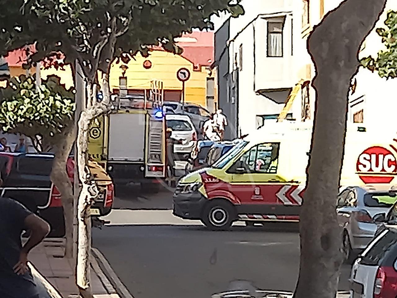Bomberos de parque zonal de Telde, efectivos de la Policía Canaria y ambulancias del Servicio de Urgencias Canario intervienen en estos momentos en un domicilio de La Garita para atender a una mujer que había sufrido una caída en el interior de su vivienda, situada en el segundo piso de un inmueble plurifamiliar de la calle de Fresno.