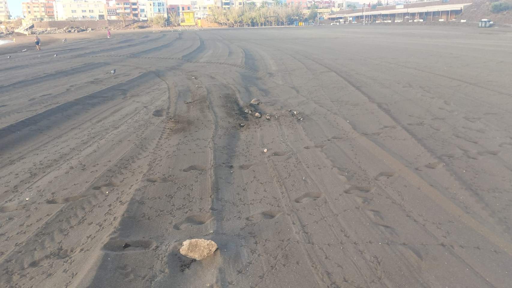 Sostienen que piedras, colillas y papeles quedan enterrados en la arena y critican que se siga utilizando esta maquinaria pese a que en el Ayuntamiento de Telde saben que no cumple su cometido y no ponen remedio.