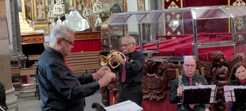Finalizado el Pregón interviene la Banda Municipal de Música de Telde que dirige José Martel, en esta Bajada del Cristo de Telde 2023, dedicando una bella selección de composiciones que, para esta ocasión bajo el crucero y presbiterio de este Santuario de la Basílica Menor de San Juan Bautista, contribuyeron con esta expresión artística musical, de las muchas que dicha Banda nos ofrece en sus programas de actuaciones por el municipio.