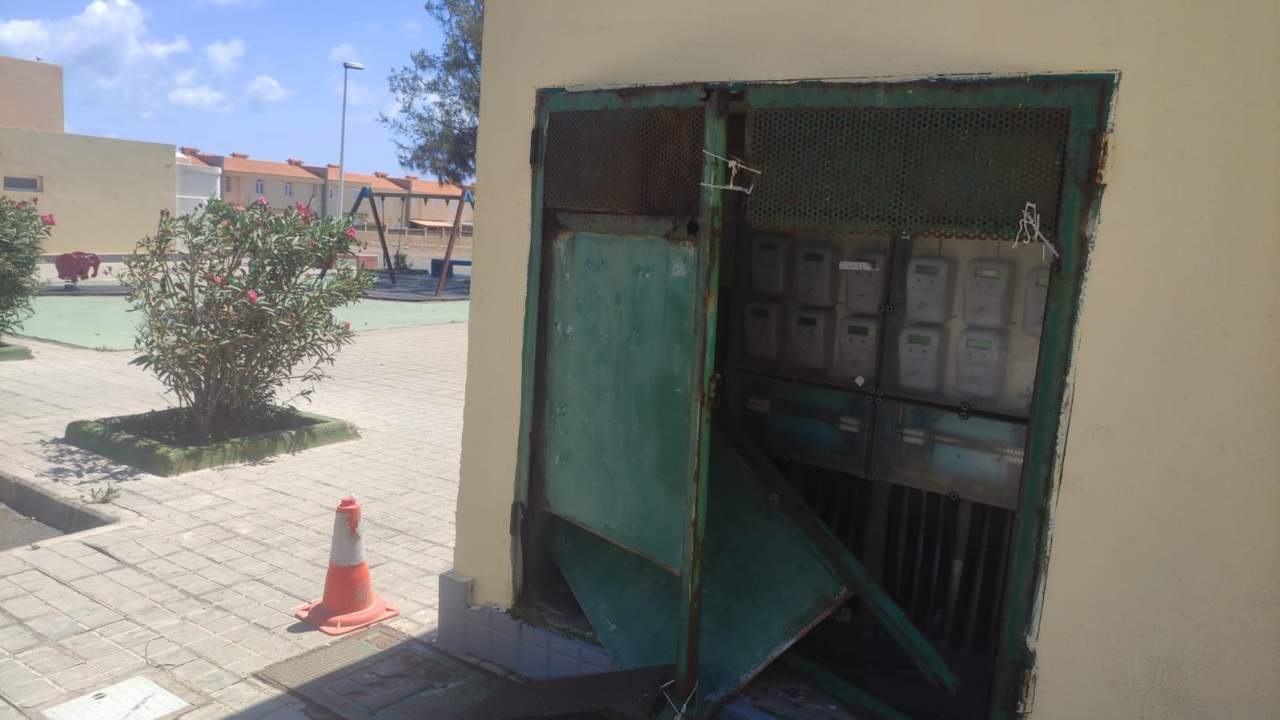 Vecinos de la urbanización de Hoya Pozuelo, en La Garita, denuncian el mal estado del cuadro de luz de uno de los edificios. Explican que en los últimos dían han salido chispas y cuatro casas se han quedado sin suministro eléctrico.