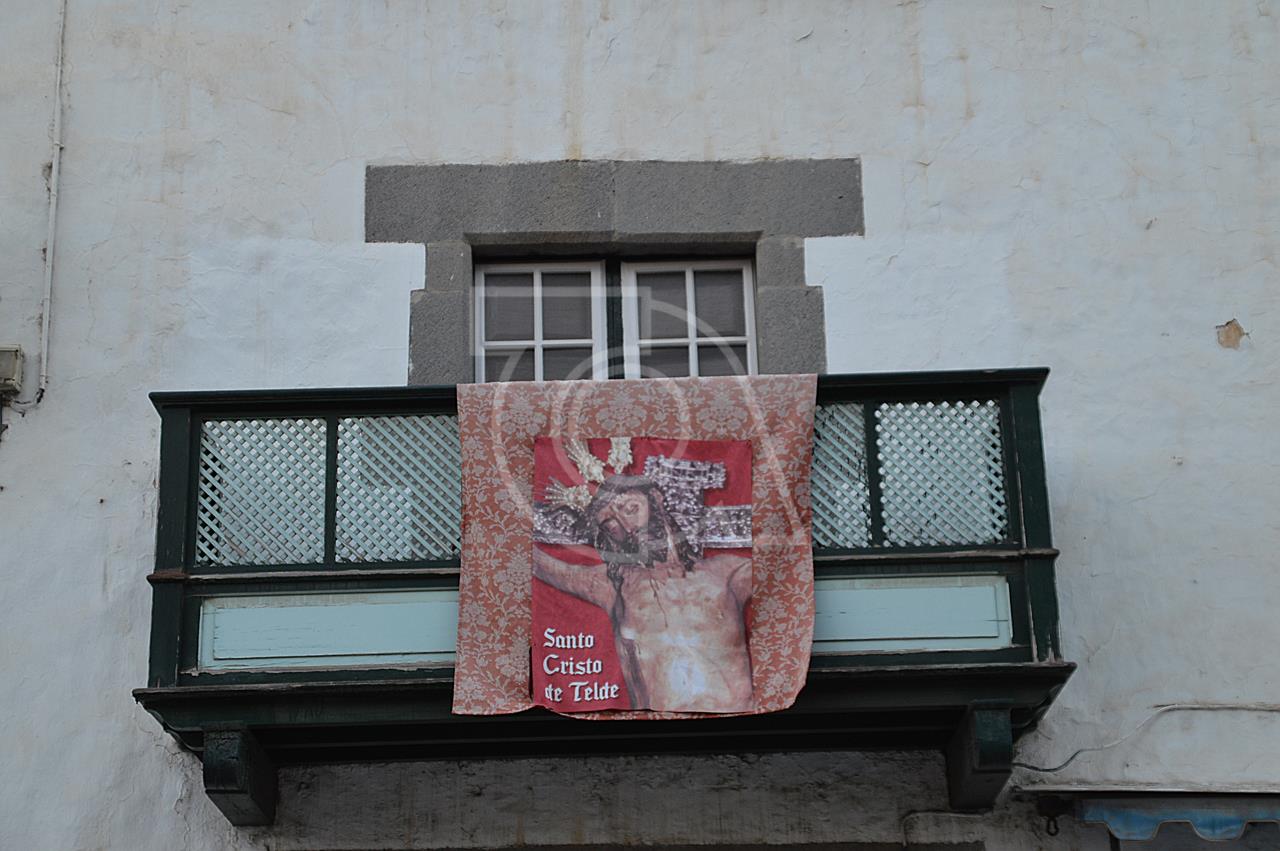 La venerada talla del Santo Cristo de Telde llena de fervor las calles del casco histórico durante la solemne procesión que está teniendo lugar en la tarde-noche de este jueves, en el día grande de los festejos, acompañada por cientos de feligreses. Es uno de los años que más público ha acudido al barrio de San Juan para seguir de cerca uno de los actos más emotivos de estas fiestas, pese a la amenaza de lluvia.