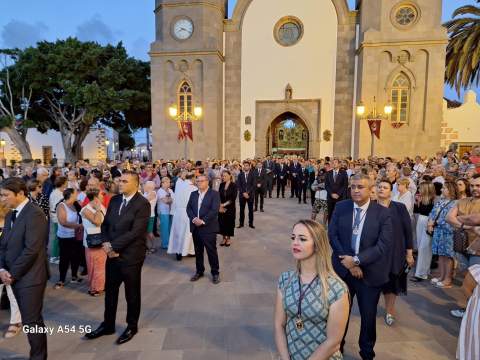En la procesión, junto a una multitud de fieles, está presente una amplia representación municipal, encabezada por el alcalde, Juan Antonio Peña, junto al resto de la Corporación, así como representantes del Gobierno de Canarias y autoridades policiales y militares, además de alcaldes de otros municipios como Onalia Bueno y Marco Aurelio Pérez, y el cronista de Telde, Antonio María González Padrón.