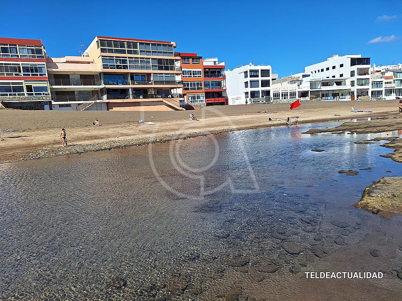 Efectivos de la empresa Proactiva, responsable de las labores de salvamento y socorrismo en las calas teldenses, fijaron dos banderas rojas en las proximidades de la charca para avisar de la prohibición de bañarse en ella por la presencia de estos animales marinos que cada año se acercan a este rincón de la costa local. Las mantelinas permanecieron allí, mimetizadas con la arena del fondo, a la espera de que subiera la marea.  La pleamar, de 2,5 metros, estaba prevista para las 14.54 horas.