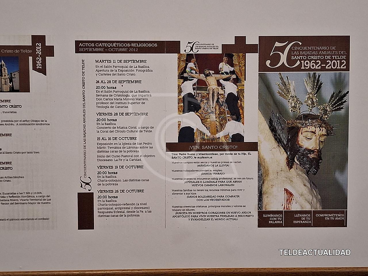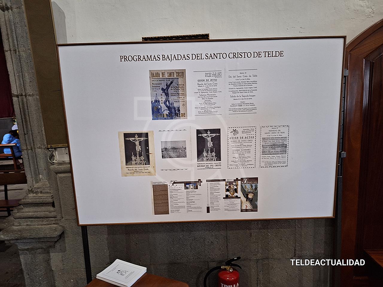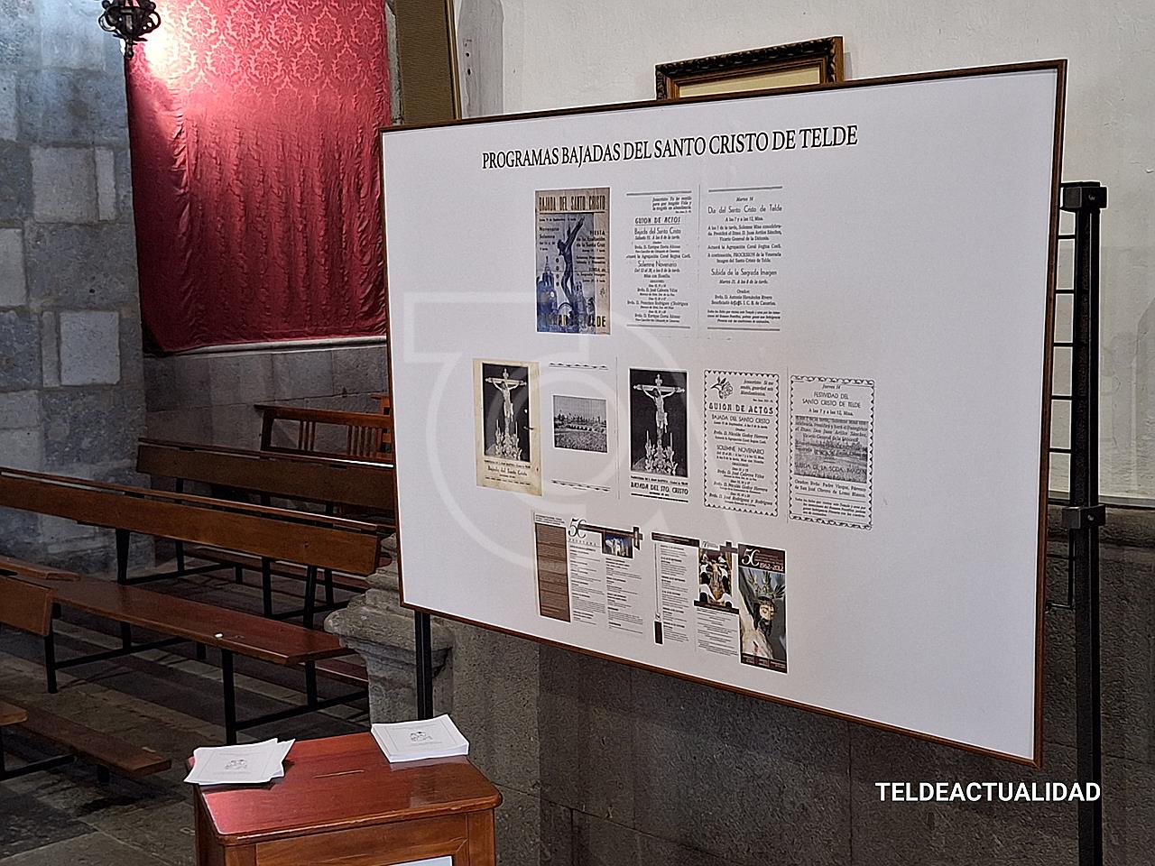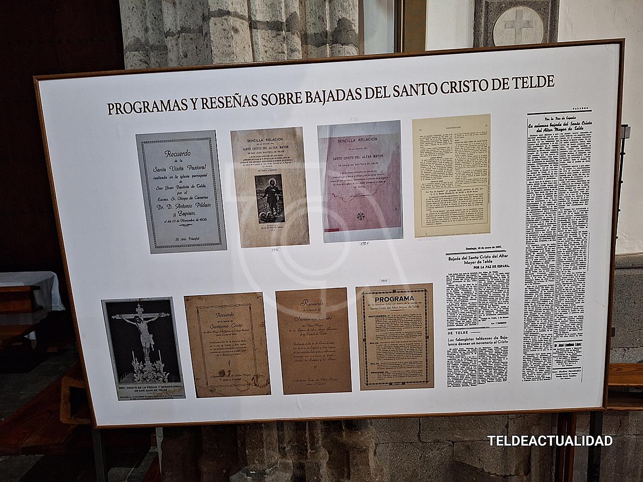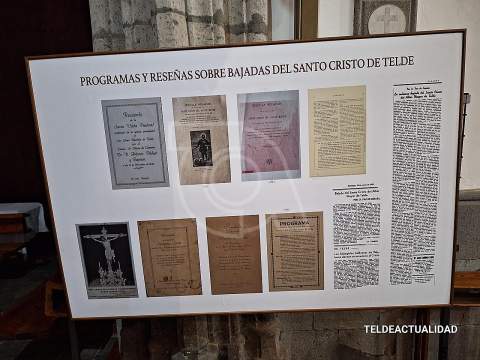 Tres paneles ubicados en la nave lateral derecha de la Basílica de Telde muestran a los feligreses y público en general una compilación de imágenes de los programas de actos y algunas  reseñas periodísticas de las Bajadas de la venerada imagen del Santo Cristo, hecho de pasta de caña de maíz y diversos tipos de papel