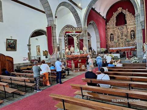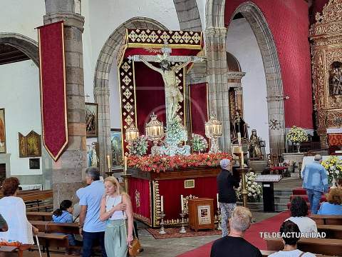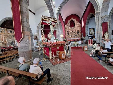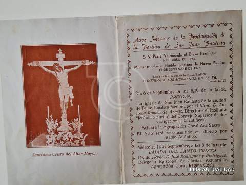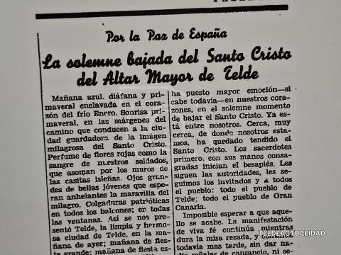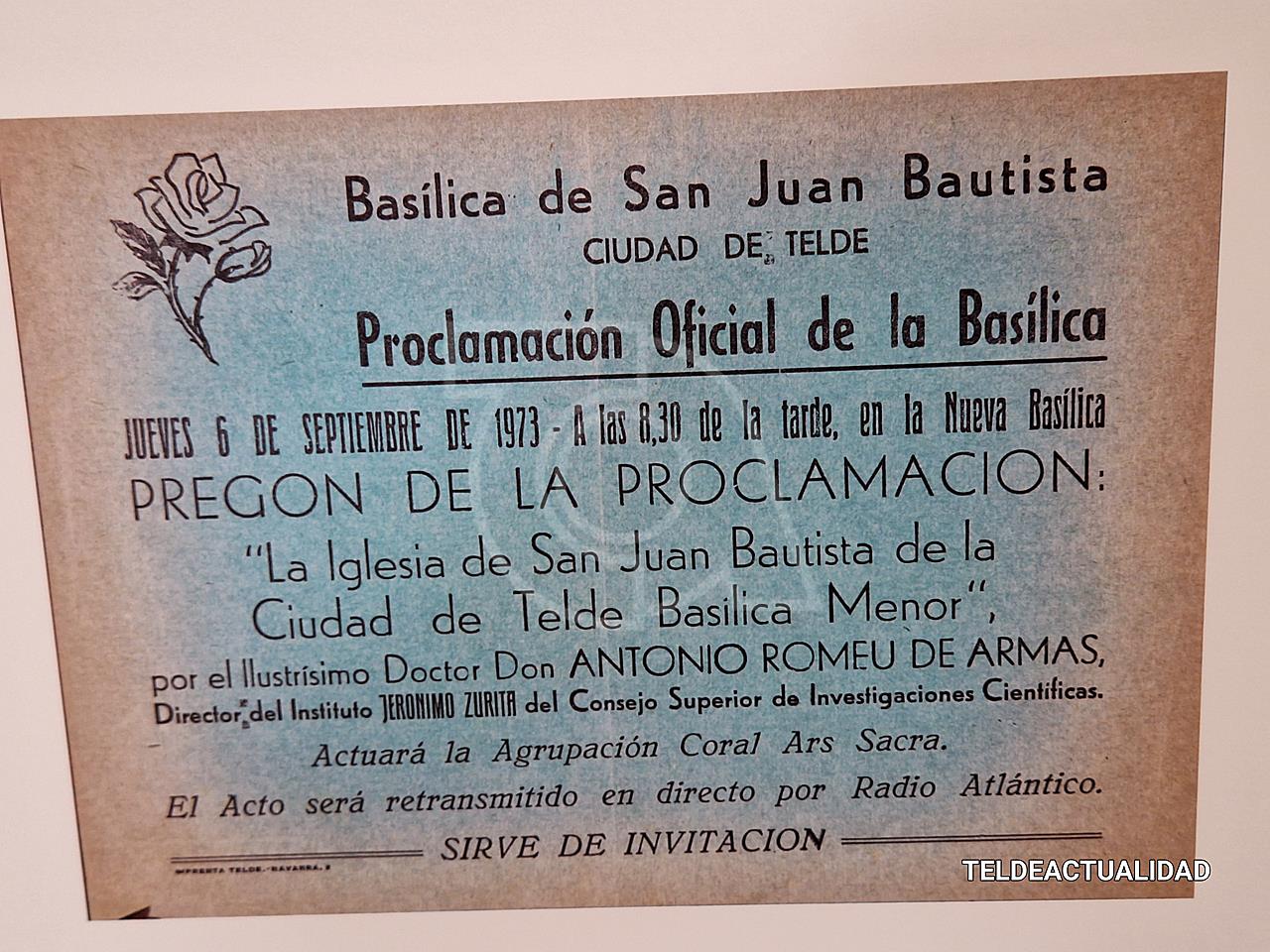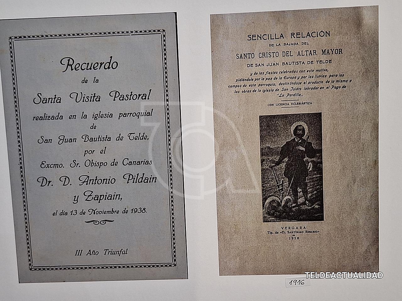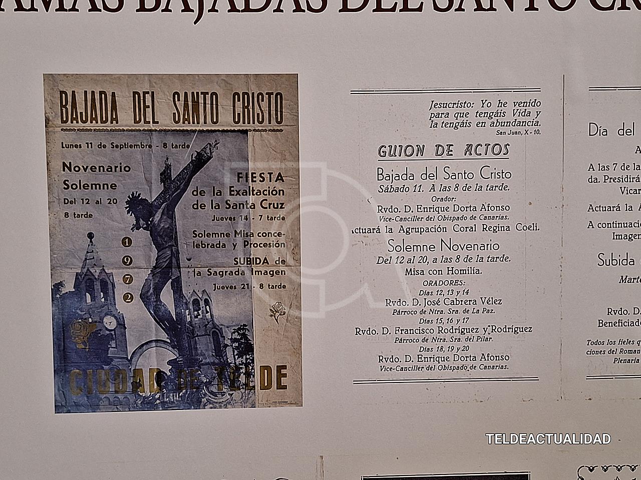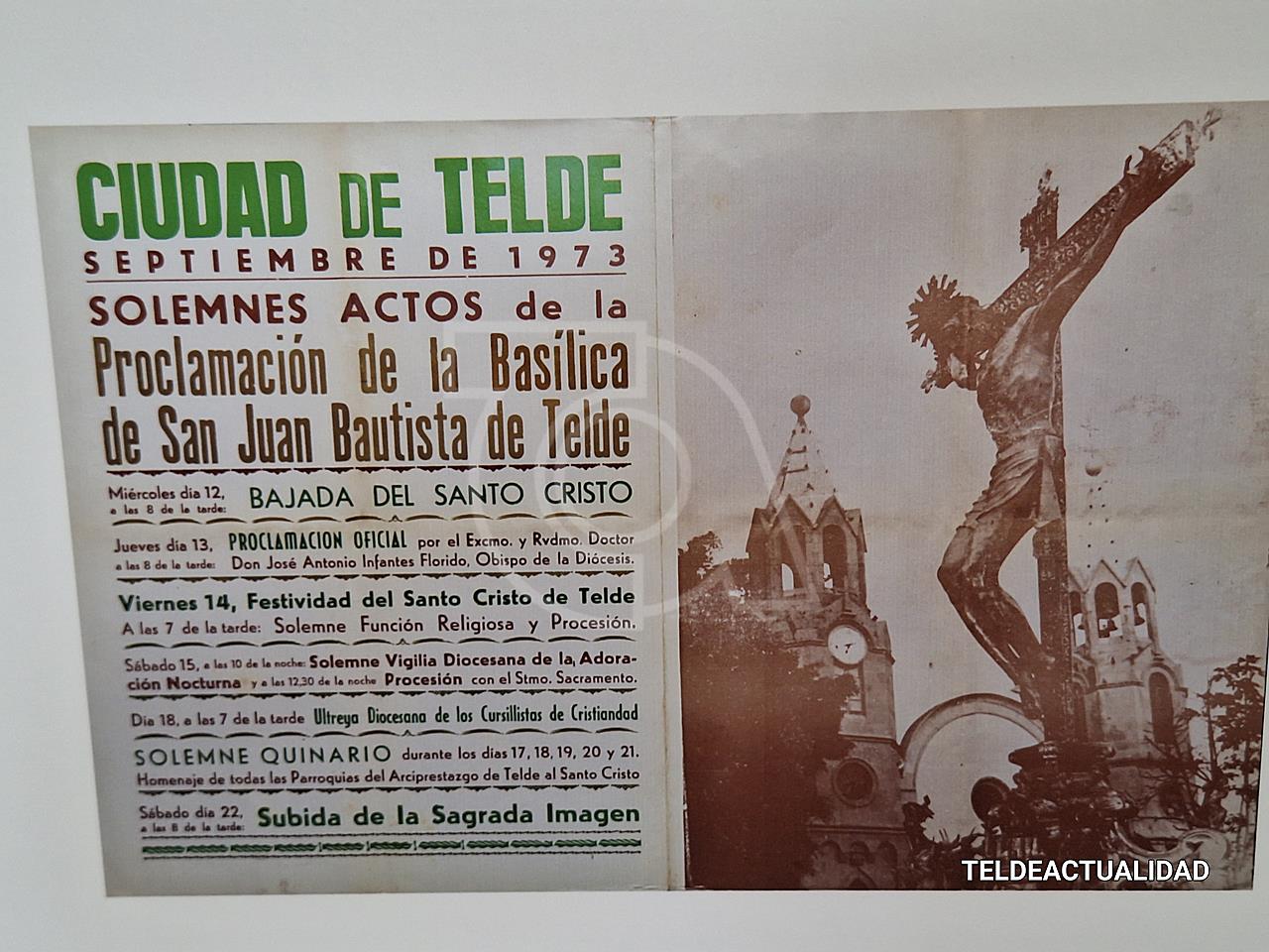 Tres paneles ubicados en la nave lateral derecha de la Basílica de Telde muestran a los feligreses y público en general una compilación de imágenes de los programas de actos y algunas  reseñas periodísticas de las Bajadas de la venerada imagen del Santo Cristo, hecho de pasta de caña de maíz y diversos tipos de papel