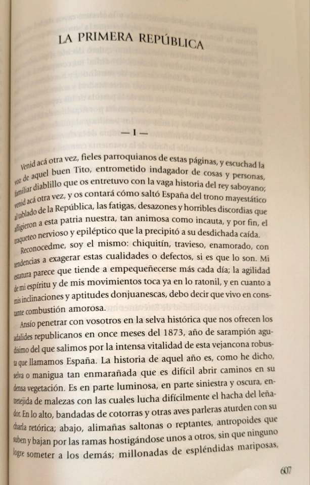 Galdós y don Nicolás Estévanez nos vuelven a recordar el problema todavía sin resolver de como va a ser nuestro territorio a día de hoy, y paradojas, a día de hoy seguimos con ese problema, y, en realidad, leyendo los primeros capítulos y páginas de la Primera República parece que estamos leyendo páginas muy actuales de nuestra historia.