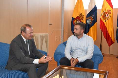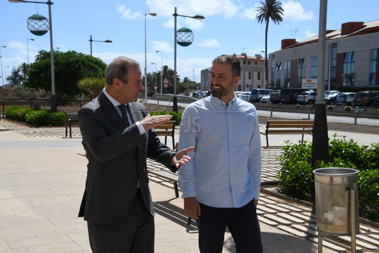El alcalde de Telde, Juan Antonio Peña, recibió en la mañana de este martes la visita del vicepresidente y consejero de Obras Públicas e Infraestructuras, Arquitectura y Vivienda del Cabildo de Gran Canaria, Augusto Hidalgo, con el objetivo de estrechar lazos y de buscar soluciones para desbloquear las gestiones que permitan la culminación del viaducto de San José de Las Longueras.