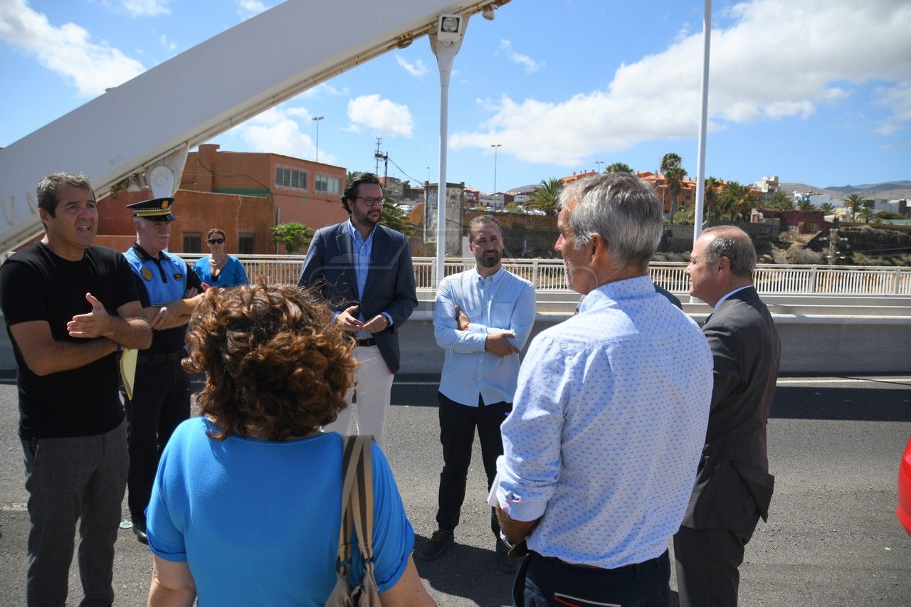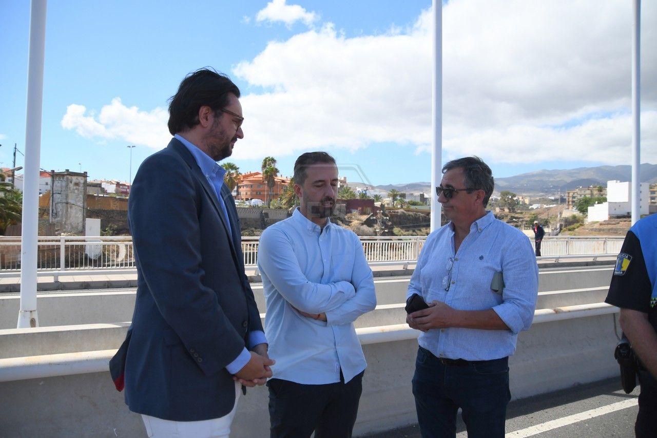 Una vez allí, los responsables institucionales analizaron de primera mano el estado actual del puente, concretamente en la zona donde se encuentra la torreta eléctrica que se ubica sobre la carretera. Así, ambas partes han decidido iniciar los trámites para, por un lado, que el Ayuntamiento proponga el proyecto de expropiación de las parcelas sobre la que está ubicado el torreón, y el Cabildo, por su parte, para mover la infraestructura eléctrica y acometer los trabajos que culminen el tramo de acera y de carretera que falta por construir.