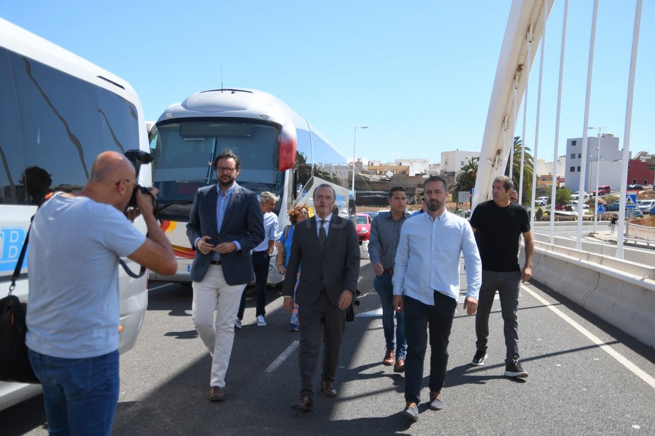 La segunda parada la realizaron en el viaducto que conecta San Gregorio con los barrios de San José de Las Longueras y La Herradura, donde se sumaron al encuentro los concejales de gobierno Sergio Ramos, vicealcalde del municipio, Juan Francisco Jiménez, edil de Urbanismo e Iván Sánchez, responsable del área de Vías y Obras.