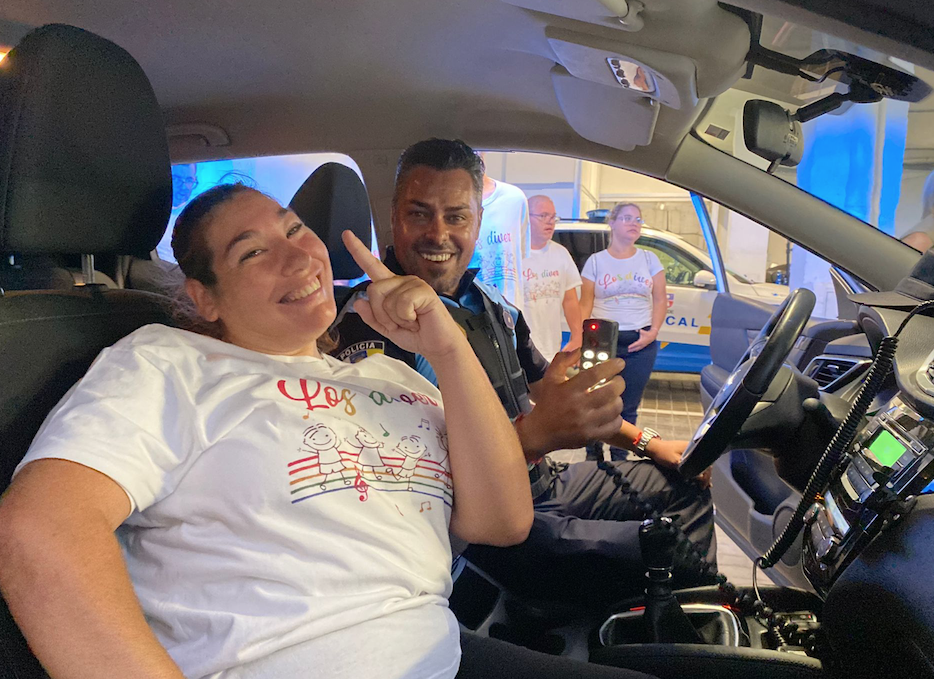 Más tarde se trasladaron a las dependencias de Servicios Sociales, donde les esperaba la concejala responsable, Adela Álvarez, para luego desplazarse hasta las dependencias de la Policía Local de Telde. Una vez allí, su jefe, Félix Ramos, y varios agentes del cuerpo, les enseñaron el recinto. Así, pudieron subirse a los vehículos oficiales, probar sus sirenas, hablar por la megafonía y sentirse por momentos auténticos agentes de seguridad.