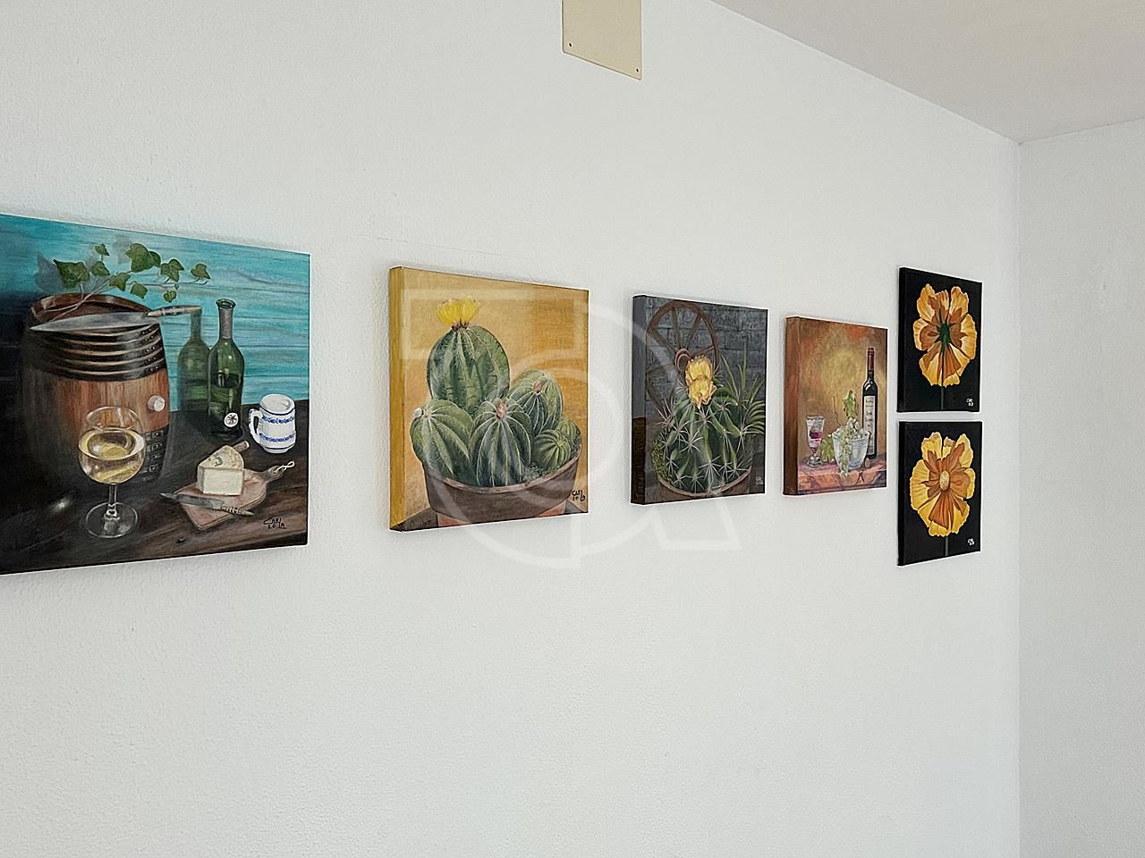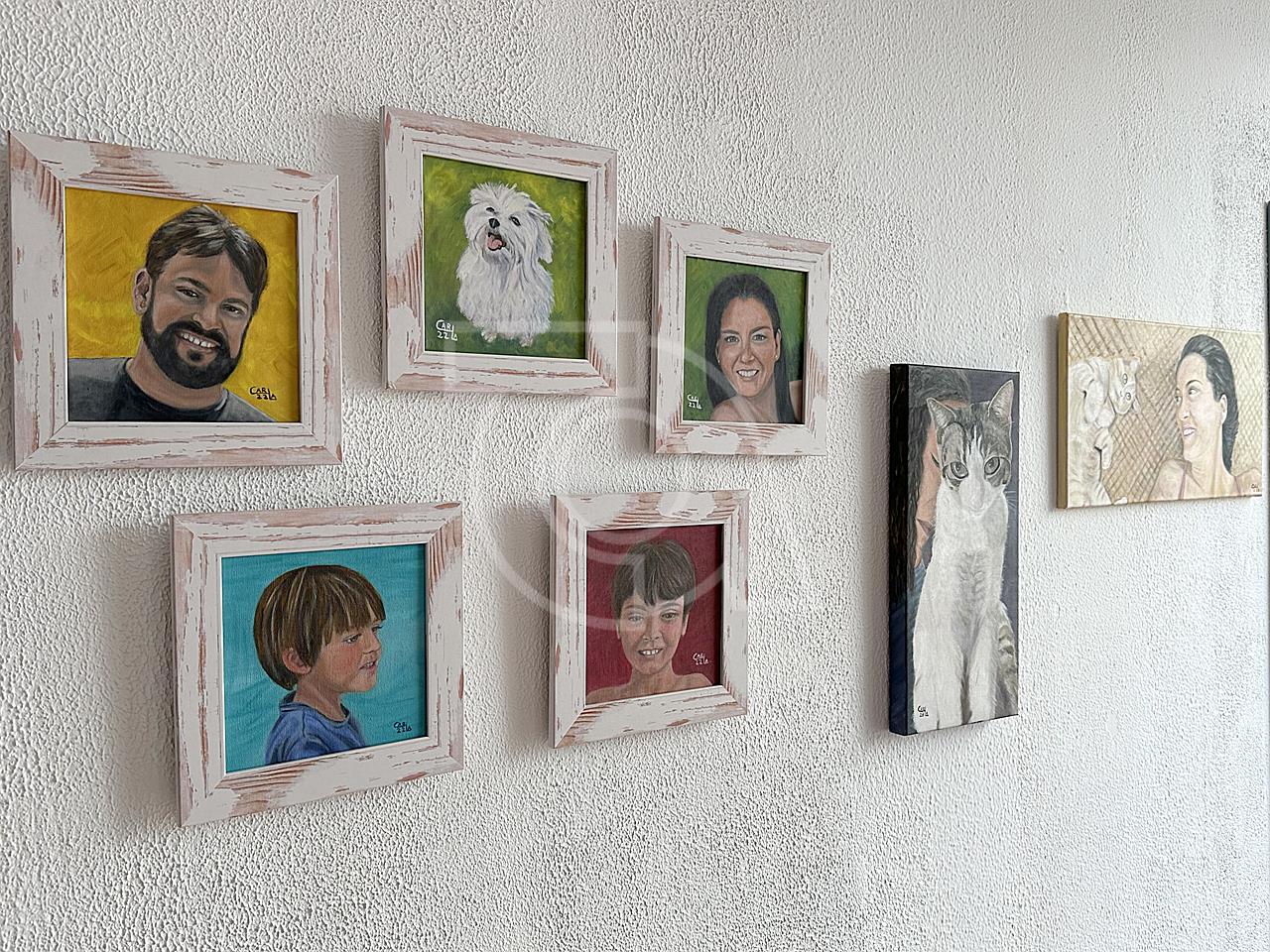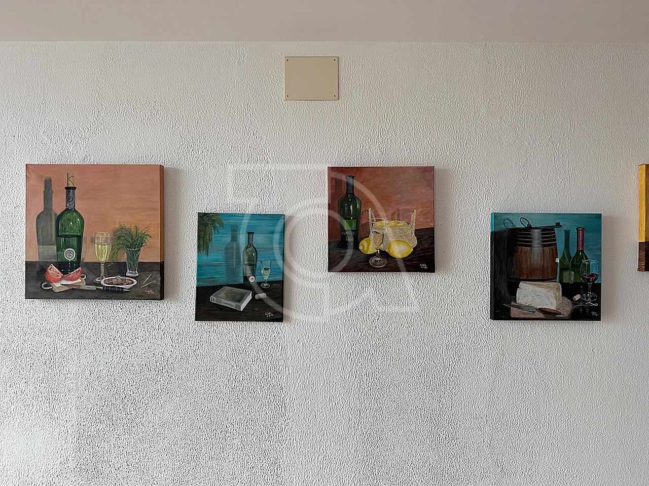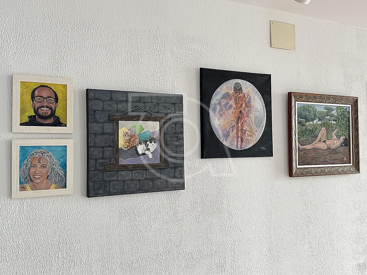 Esta exposición de 34 cuadros, que acoge dos salas del espacio cultural de Los Llanos, contiene obras de tres series diferentes de la pintora: África, que responde a la sensibilidad de la artista ante la injusticia y la desigualdad; El alma del bodegón, que tiene que ver con los “encuentros de familia y amigos alrededor de una mesa donde se comparte mucho más que comida y bebida”, como ella misma describe; y Familiareando, que consiste, según Carla, en “retratos de familiares, amigos humanos, perrunos y gatunos, y flores, con sabores de refugio, apoyo y acogida, siendo en definitiva el alimento que nos sustenta para proyectar”.