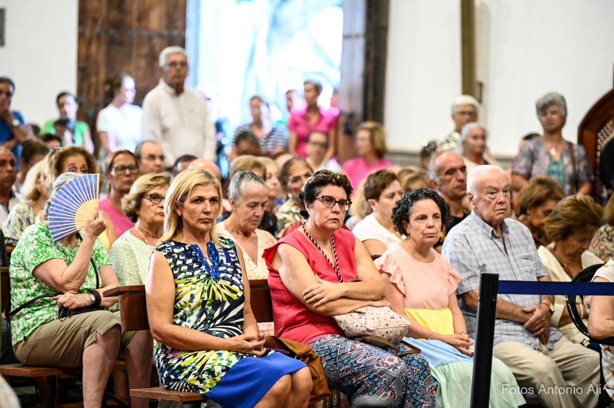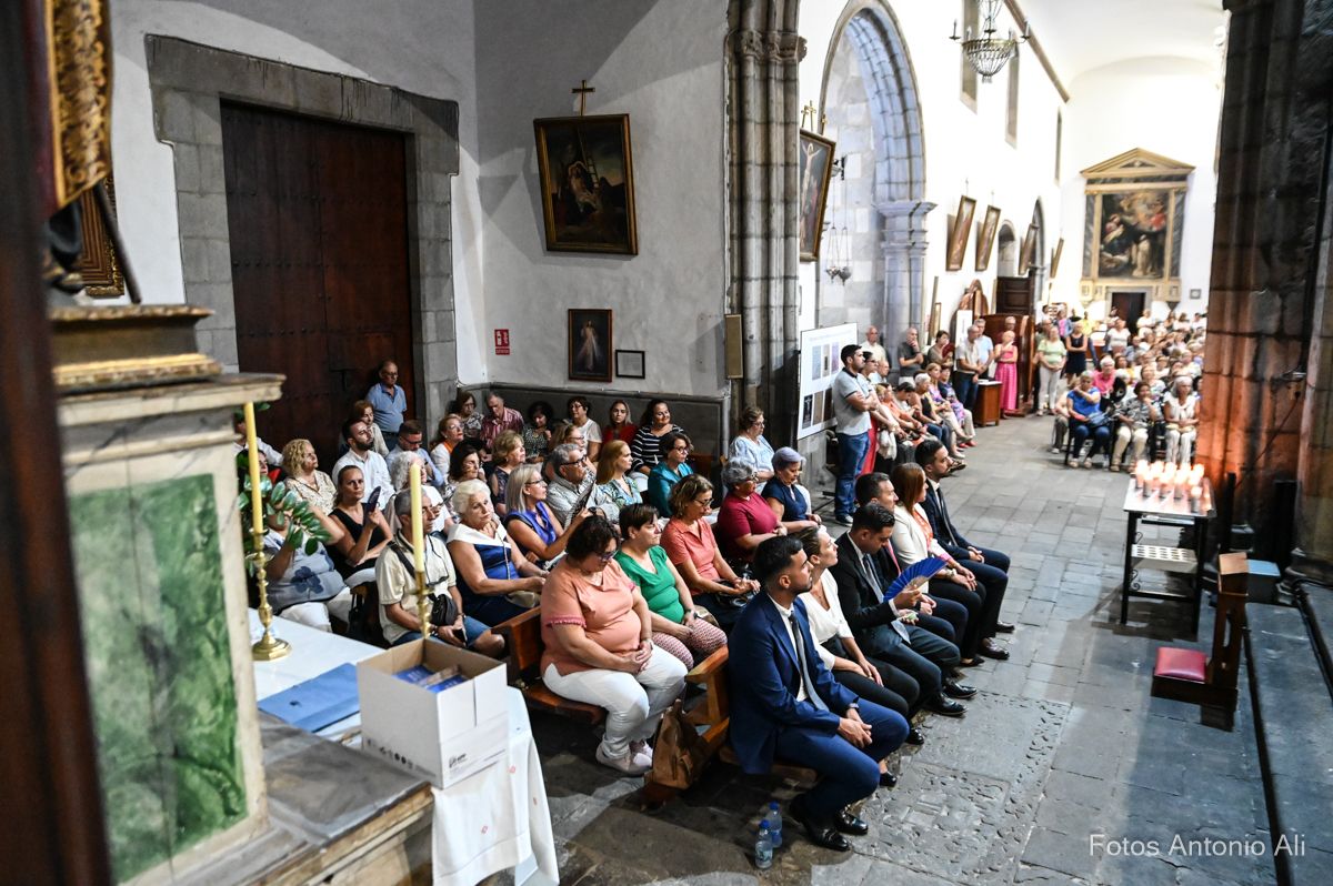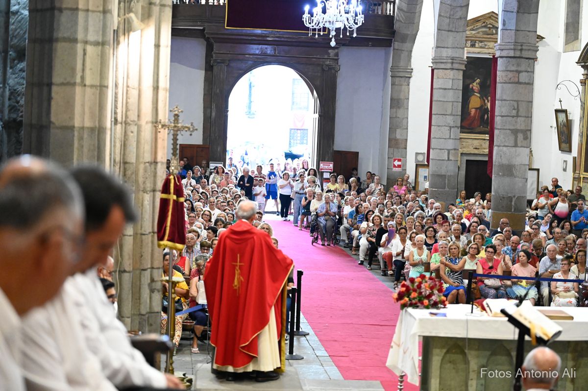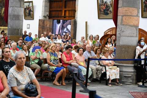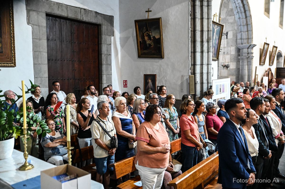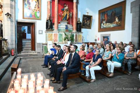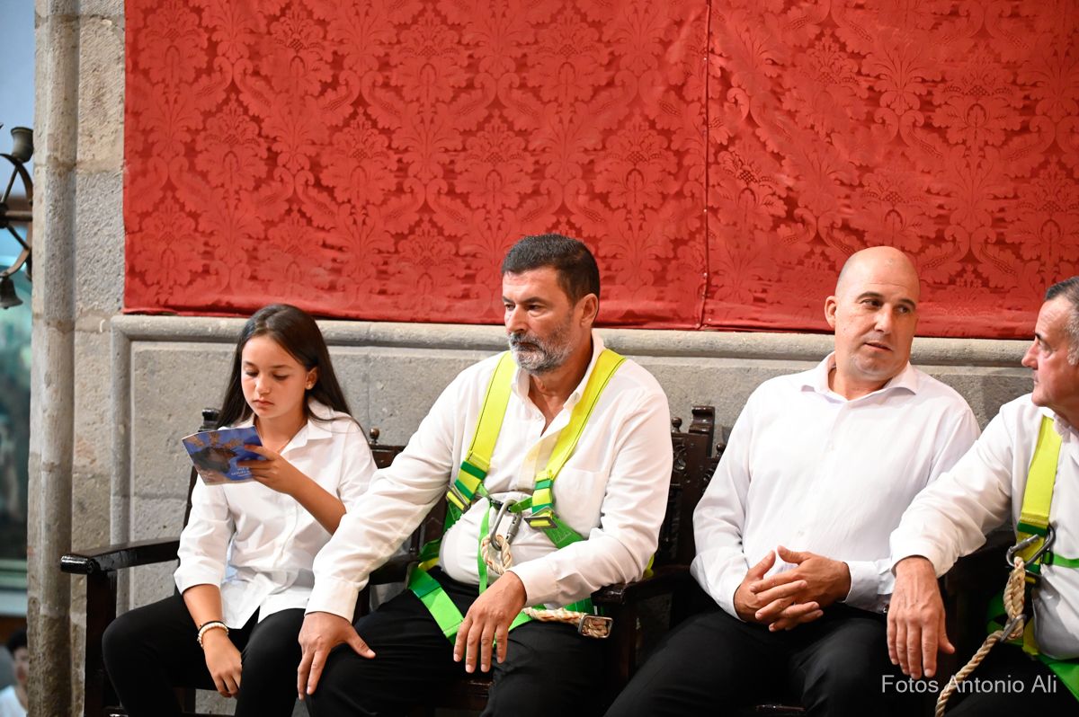 El acto de la Subida comenzó al finalizar la eucaristía que ofició el párroco titular José María Cabrera con el acompañamiento de siete sacerdotes más, en un templo matriz abarrotado de personas y con la presencia del alcalde de Telde, Juan Antonio Peña, y miembros de la Corporación local.