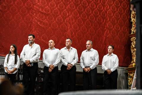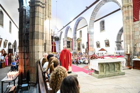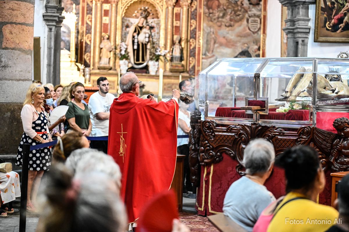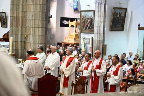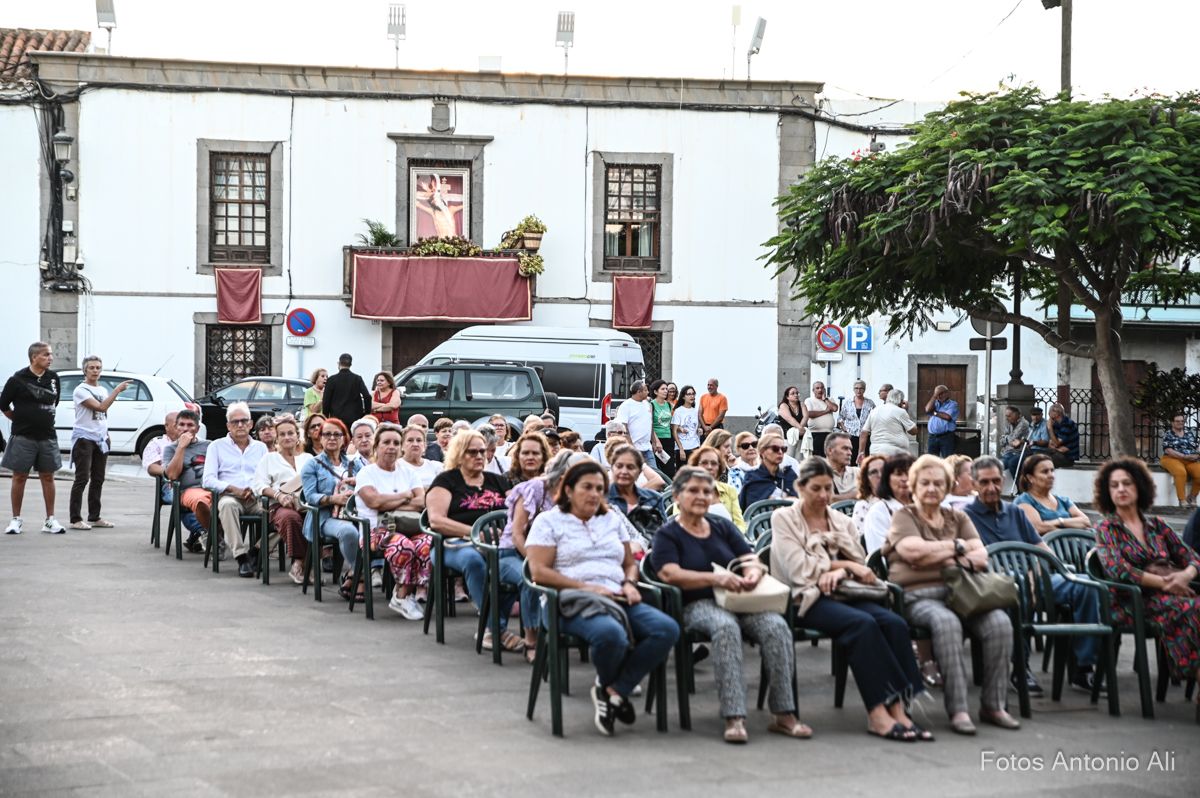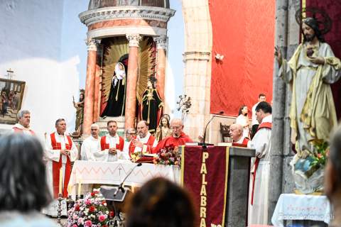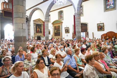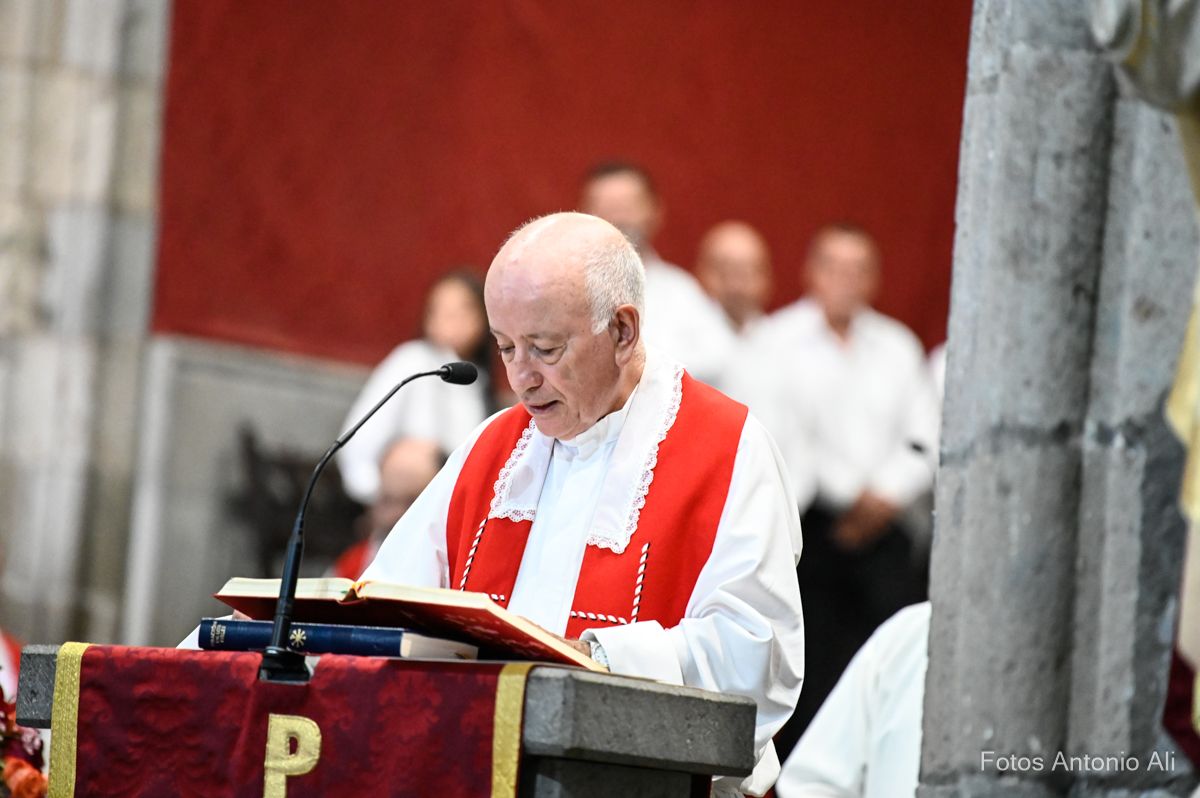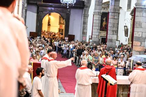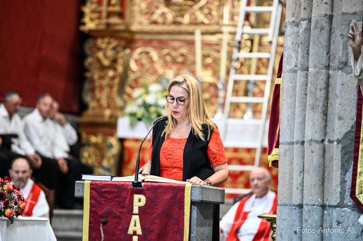 El acto de la Subida comenzó al finalizar la eucaristía que ofició el párroco titular José María Cabrera con el acompañamiento de siete sacerdotes más, en un templo matriz abarrotado de personas y con la presencia del alcalde de Telde, Juan Antonio Peña, y miembros de la Corporación local.