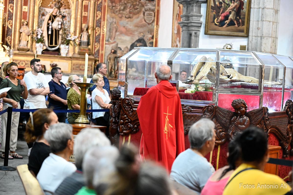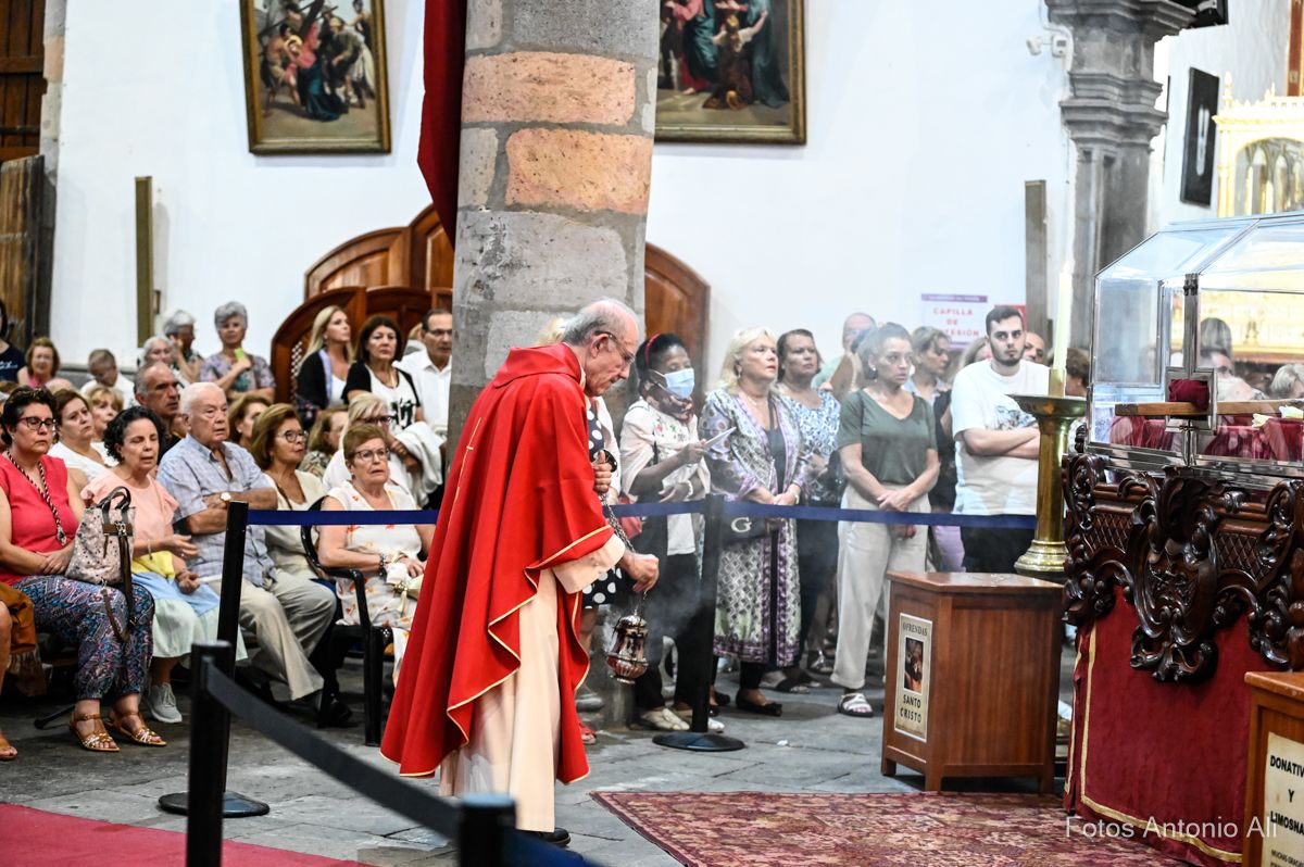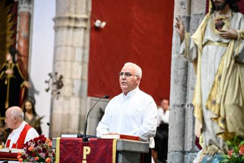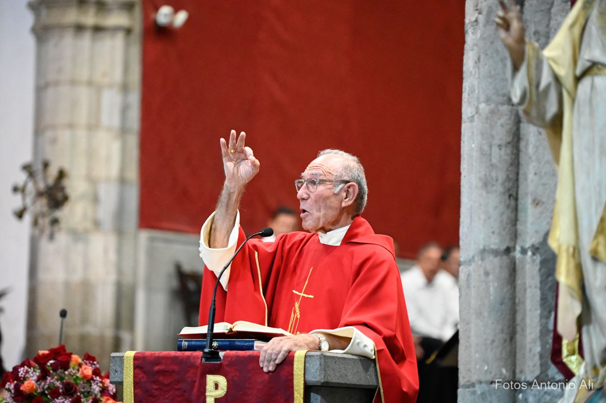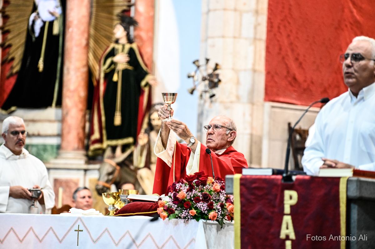 Cabrera ofició la última eucaristía de las fiestas del Cristo como sacerdote titular de la Parroquia de San Juan después de 14 años como su máximo pastor espiritural. El cura aprovechó la homilia para su despedida con unas emotivas palabras que hicieron saltar las lágrimas a numerosos feligreses que vitorearon su nombre en varias ocasiones durante la celebración.