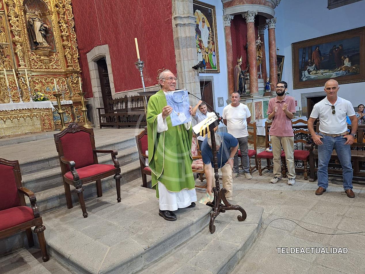 Tras unas cariñosas palabras de la profesora Delia Pintos Vieites, estrecha colaboradora de la Parroquia de San Juan, el cura que se hizo cargo de esta demarcación pastoral el 25 de septiembre de 2009 fue agasajado, entre otros detalles, con una mochila, un reloj, un bolígrafo, una camisa, un fin de semana de descanso y una placa que le entregó que el grupo conocido como Los mariachis del Cristo, las personas que se encargan cada año de bajar y subir la venerada imagen.