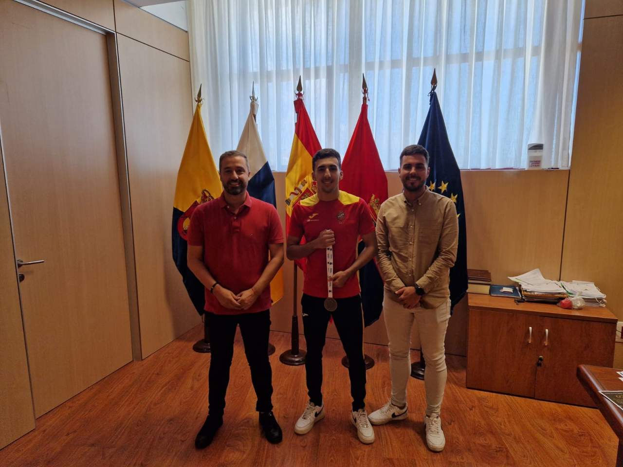 “Giovanni Suárez es el ejemplo de que en Telde tenemos una gran cantera, así como unos magníficos clubes y entrenadores. En nombre de los y las teldenses, le he transmitido el agradecimiento de la ciudad por llevar orgulloso la bandera del municipio por todo el mundo. Ahora nos toca a nosotros devolver a nuestros deportistas las ganas y el esfuerzo que hacen, allanándoles el camino hacia sus metas y objetivos. Telde camina hacia adelante con el deporte”, declara Juan Antonio Peña.