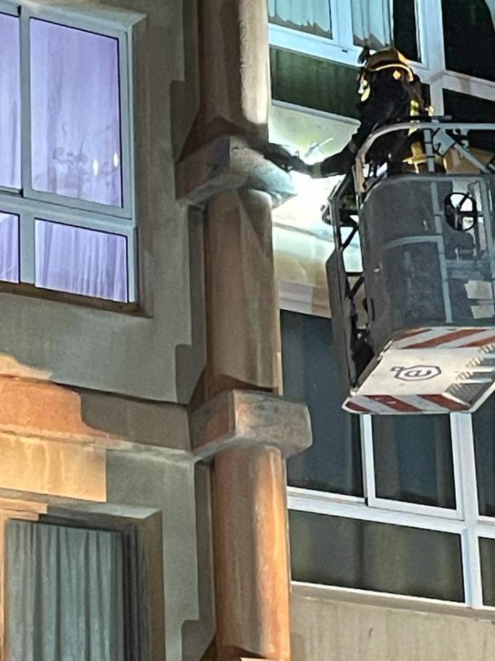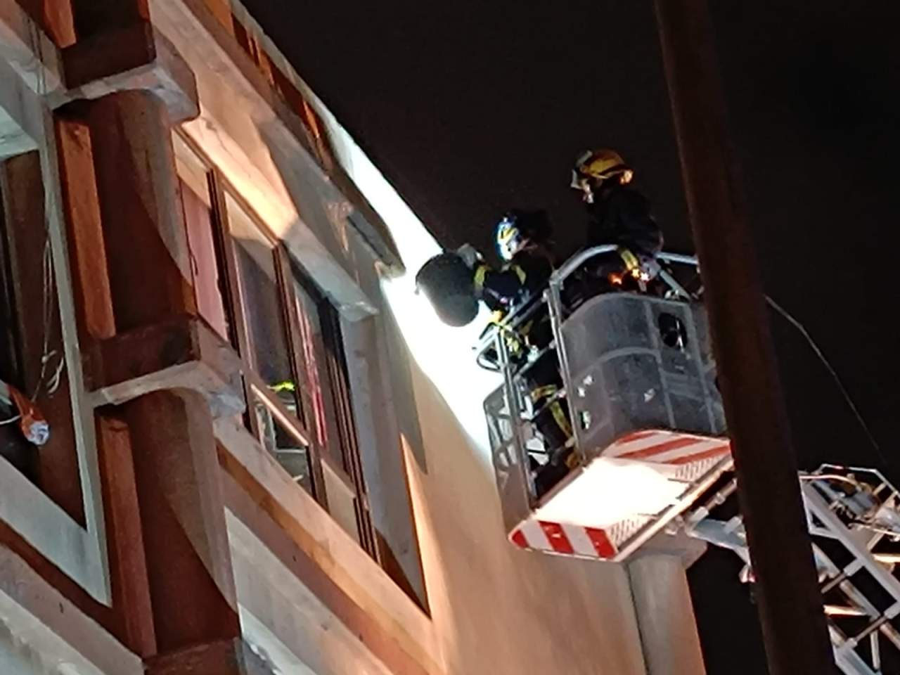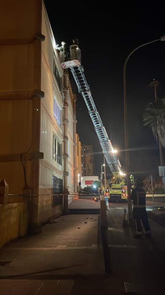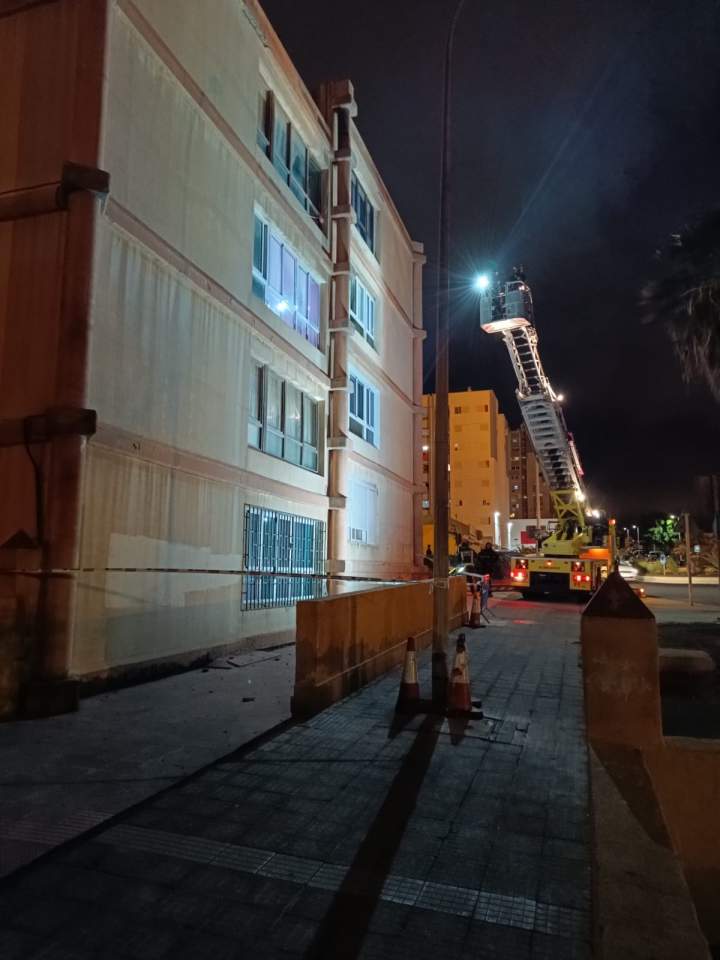 Bomberos del Consorcio de Emergencias de Gran Canaria, adscritos al parque zonal de Telde, tuvieron que intervenir anoche en el Valle de Jinámar ante la caída de cascotes desde el frontis del número 24 de la calle de Fernando Sagaseta.