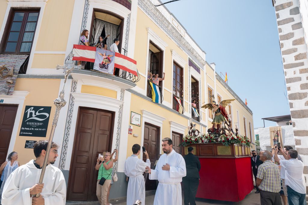 Una jornada que comenzó en el municipio con la eucaristía en honor a San Miguel que ha sido presidida y predicada por el obispo Monseñor José Mazuelos. En esta ocasión, y como novedad, la procesión se ha realizado tras el desfile de ganado por el casco del municipio. Un recorrido donde vecinas del municipio han cantado folías y malagueñas al paso de San Miguel.