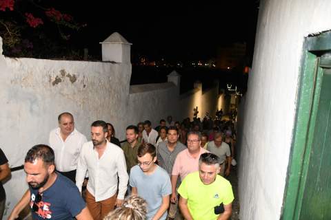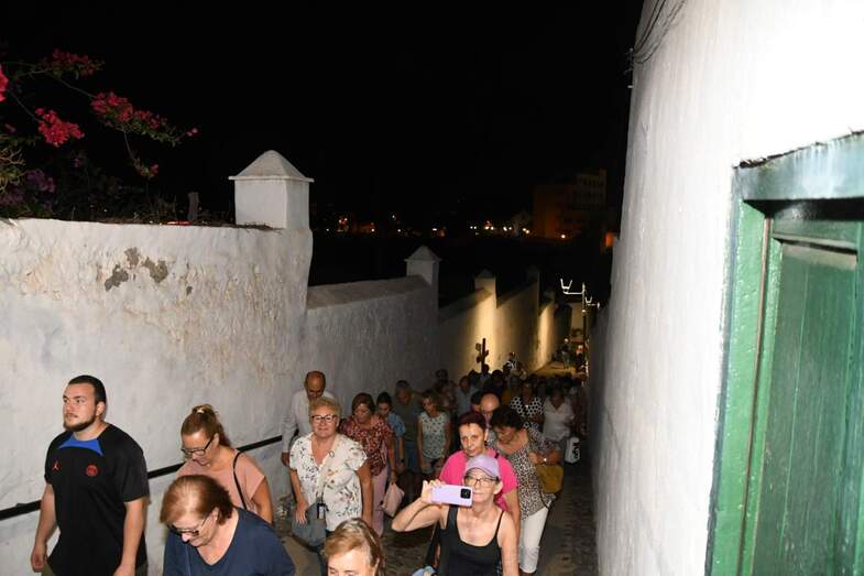 Guiado por el cronista oficial de la ciudad, Antonio María González Padrón, y amenizado por la Banda Municipal de Telde, el periplo cultural partió del interior de la iglesia conventual y discurrió por la plaza del convento y parte de las calles de San Francisco, Huerta, Inés Chimida para finalizar en la plaza de Los Romeros, delante del templo.
