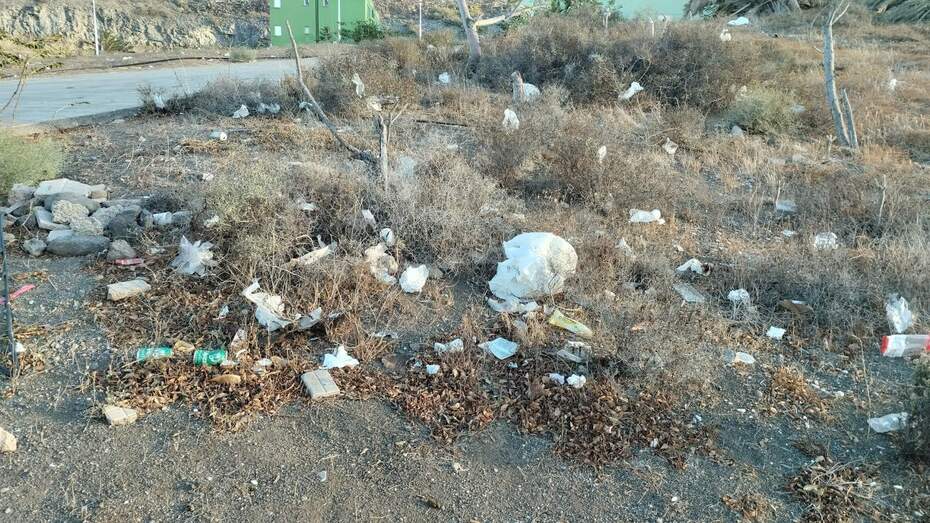 Los vecinos de Jinámar se quejan de la suciedad que se acumula en la zona de la entrada al CEIP Poeta Montiano Placeres, junto al Pepe Chiringo, ya que los clientes de este restaurante de comida rápida tiran los restos de la consumición en los alrededores.