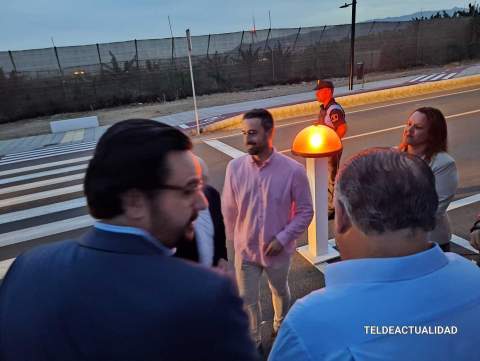 El presidente del Cabildo de Gran Canaria, Antonio Morales, y el  alcalde de Telde, Juan Antonio Peña, inauguraron en la noche este miércoles el alumbrado público en el carril bici-peatonal de la ampliación de la carretera de Melenara. En el encendido participó también el atleta teldense Azman Mesand, campeón del mundo OCR.