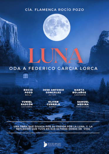 Esta obra divaga por la pasión de la luna del poeta, así como por la reflexión que tuvo este en sus últimas horas de vida. Asimismo, pretende embarcar al público en un recorrido musical por temas de Falla y Granados, con una dramaturgia que evoca a la luna lorquiana, de la mano de un intérprete, José Antonio González, que recitará y deleitará a los espectadores con su prosa. Para acompañarle estarán la voz de la cantante Marta Bolaños y el baile flamenco de Rocío Pozo. Así, Oliver Curbelo pondrá el sonido del piano, Yuniel Rascón el de la guitarra y Samuel Medina estará a los mandos de la percusión.