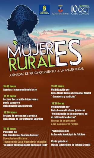 El municipio de Telde acoge el próximo 10 de octubre, con motivo del Día Internacional de las Mujeres Rurales, la primera edición de unas Jornadas de Sensibilización y Visualización de la Mujer Rural, en el que se hará un reconocimiento a la mujeres del cultivo de berros, instaladas en zonas como Las Goteras, La Solana y el Barranco de García Ruiz. En representación de ellas, se reconocerá la labor de Roxana Orellana.