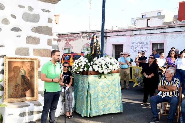 En el acto, presentado por Luz Belinda Medina, profesora y pregonera de las fiestas del Cristo de Telde de este año, intervinieron el alcalde, el artista, el empresario donante y el presidente de la AV La Taborda, Antonio Santana, conocido cariñosamente por el sobrenombre de El virula.