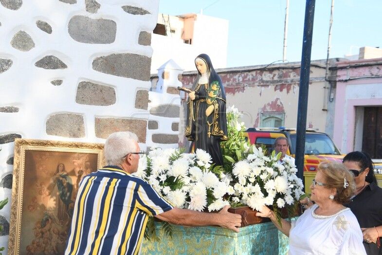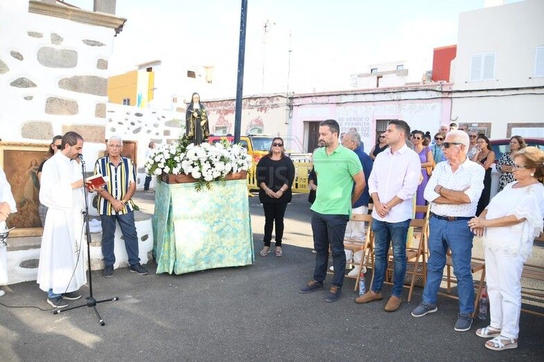 El patrimonio religioso de la pequeña y vetusta ermita de estilo múdejar de San Antonio de Telde se vio enriquecido en esta jornada con una pequeña talla policromada de madera de Santa Rita de Casia, patrona de lo imposible, obra del ebanista sevillano Francisco Martín Martín, donada por el conocido y querido empresario teldense, Juan Diego Falcón González, natural de este enclave poblacional de la ciudad, tal y como había adelantado TELDEACTUALIDAD.