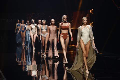 Monnur ha propuesto un viaje a la década de los 70, época de lujo desenfrenado. Esta conjunción de elementos da lugar a una explosión de colores vivos, revistiendo su colección de gran luminosidad.