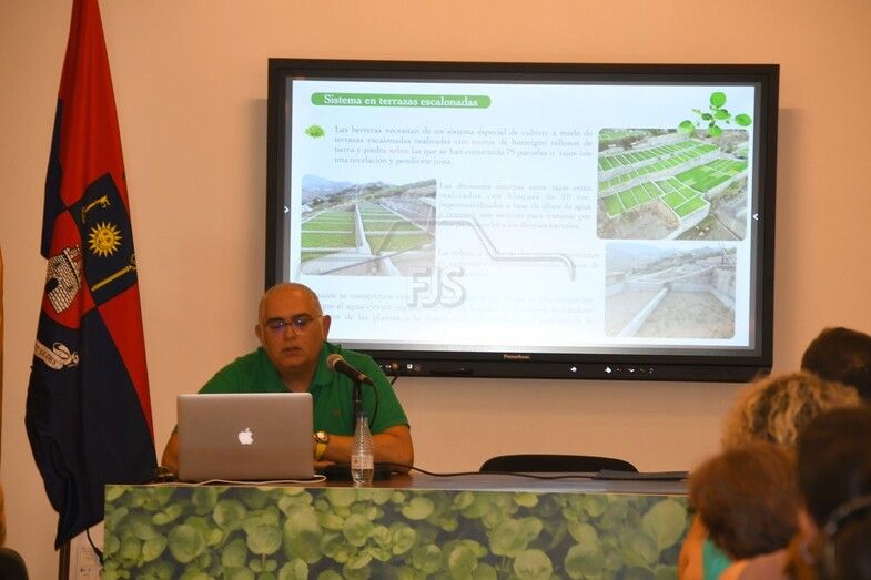 A continuación, la poeta María de la Paz Monzón González quiso resaltar la labor de las homenajeadas a través de un poema sobre su “lucha, sacrificio, horas al sol y manos llenas de tierra”, invitando a la igualdad y la equidad respecto a los hombres. Así, el licenciado en Historia y técnico de la Casa Museo León y Castillo, Juan Ismael Santana Ramírez, encabezó una ponencia completa, con estudios previos, sobre el agua y el cultivo del producto estrella de estas jornadas.