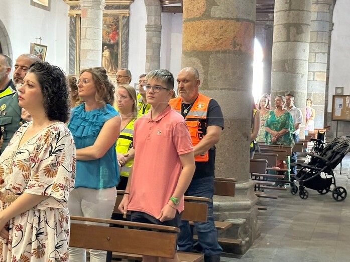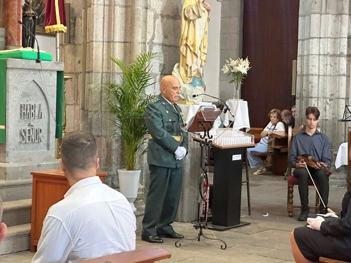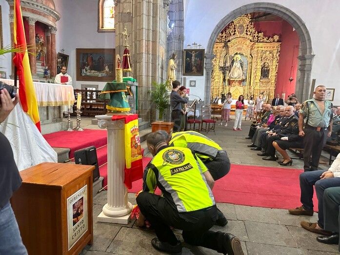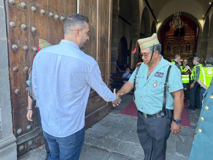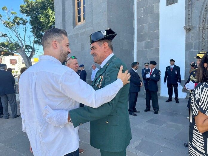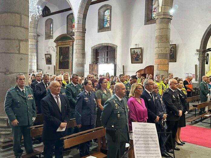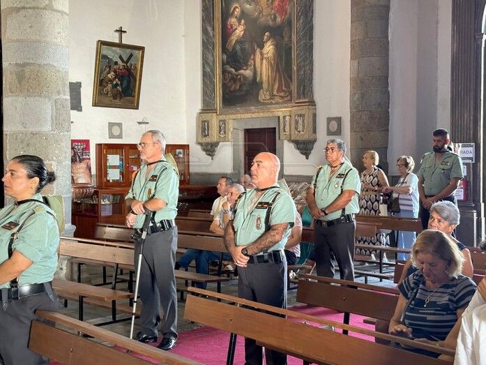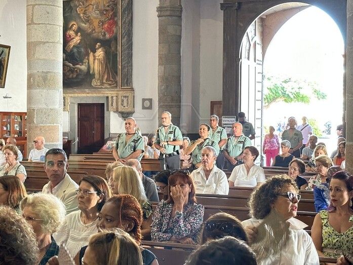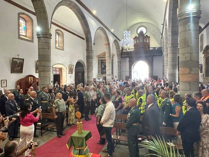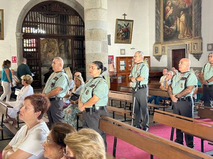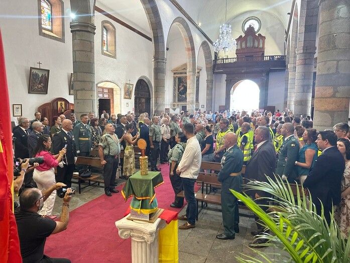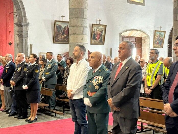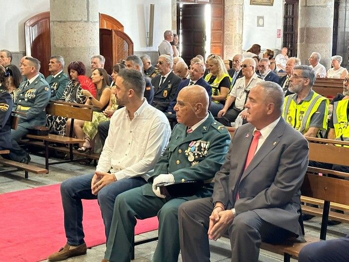 La Basílica de Telde acogió al mediodía de este jueves festivo, día de la Virgen del Pilar y de la Fiesta Nacional, una misa en honor de la patrona de la Guardia Civil.