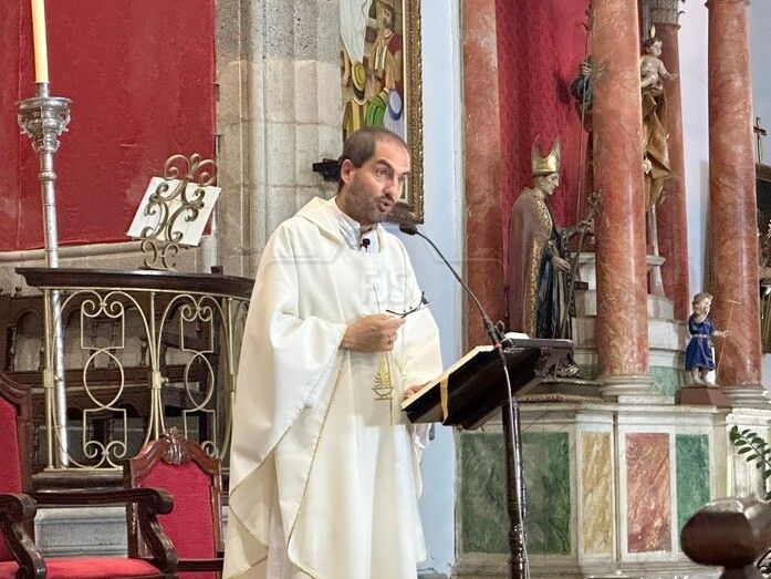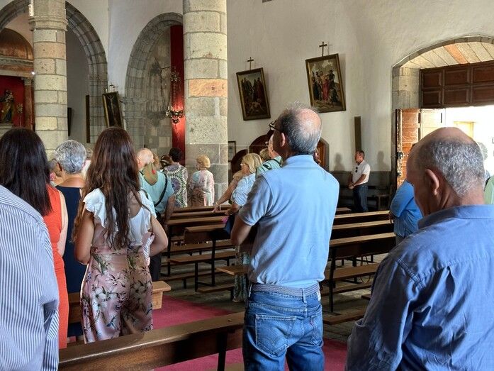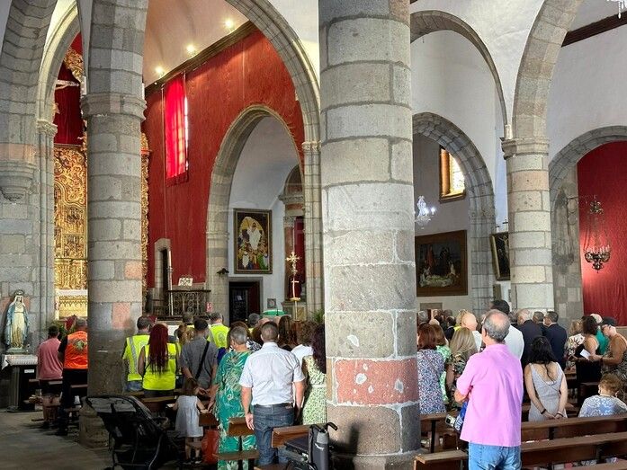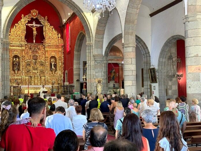La eucaristía estuvo oficiada por el nuevo párroco de San Juan, Antonio Juan González y se realizó una ofrenda floral ante una talla de la Virgen del Pilar.