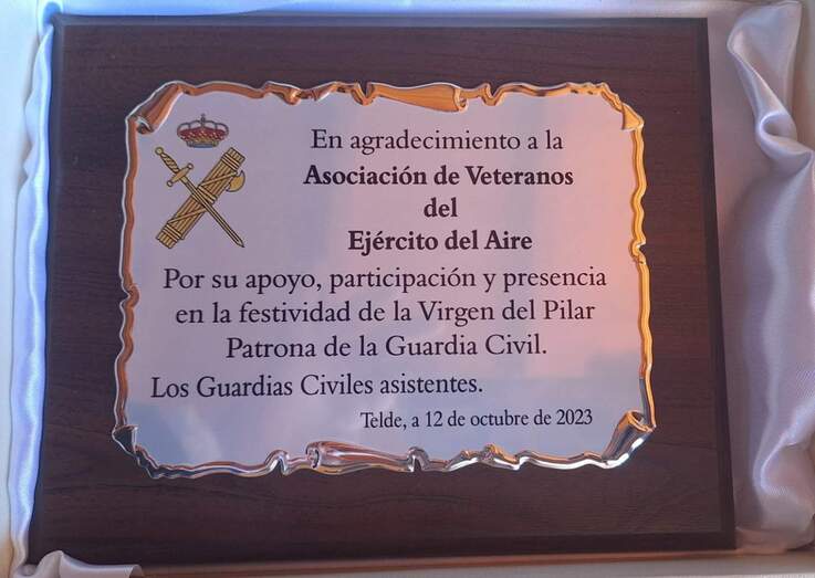 La Guardia Civil agasajó luego a los asistentes con un brindis en la Finca Alba de Telde, donde se entregaron placas a los colectivos colaboradores con el evento.