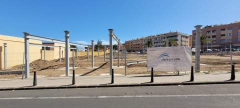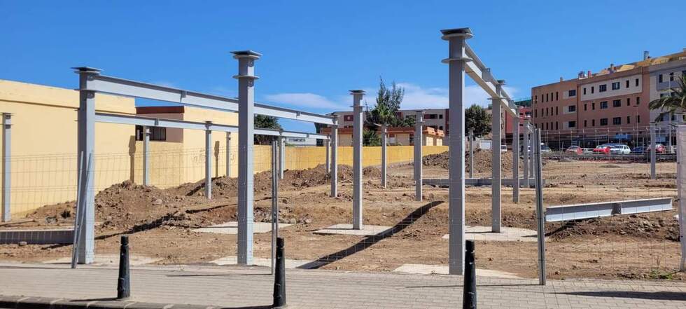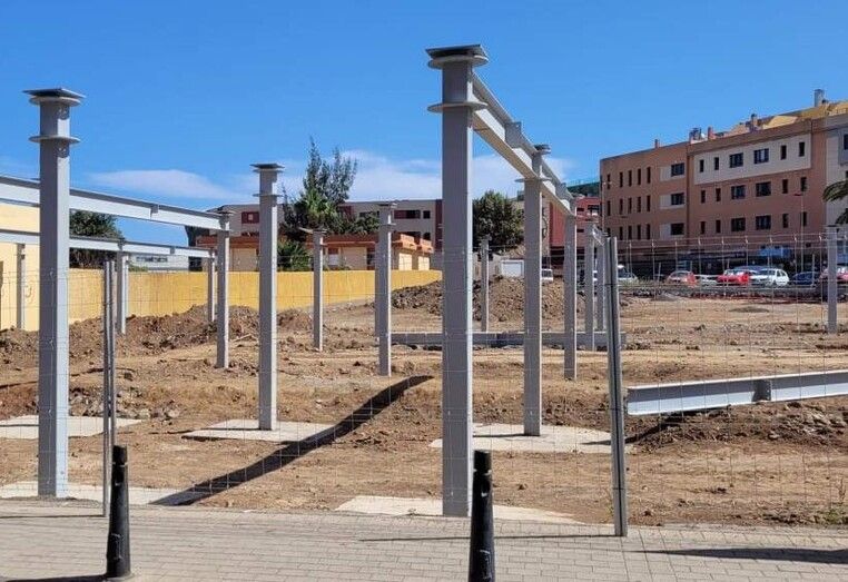 Esta obra, impulsada por Nueva Canarias, tendría que estar terminada esta semana. Peña se dedicó a hacer un vídeo en el propio solar quejándose de que Carmen Hdez dejaba a los padres sin lugar donde aparcar a final de curso.