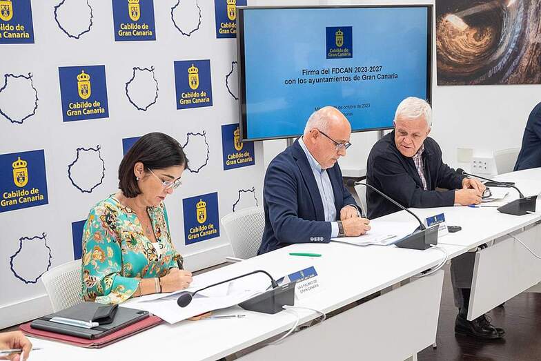 El presidente del Cabildo de Gran Canaria, Antonio Morales, ha firmado hoy con los alcaldes de 19 municipios de la Isla los convenios del Fondo de Desarrollo de Canarias (Fdcan), con los que el Gobierno insular compromete una inversión de 509 millones de euros, para la ejecución de 428 actuaciones destinadas a materializar el Programa Insular de Desarrollo Socioeconómico de Gran Canaria 2023-2027, con el propósito de transformar la realidad grancanaria en los ámbitos económico, social y medioambiental. Telde recibirá 23,5 millones de euros.