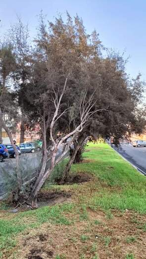 Faltan nuevos tarajales en la rambla con césped, esa primera rambla que se inicia a partir de la rotonda de Melenara, la del barco. Algunos de los existentes fueron talados, al igual que algún pino marítimo, pero los que quedan, muy bien desarrollados, ofertan una imagen única, alegre y fresca, en contraste a tanto cemento costero.