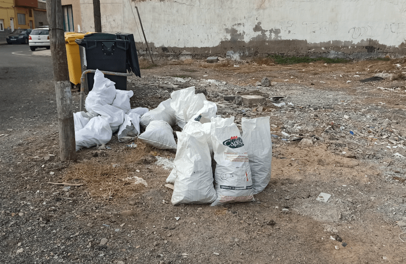 Un vecino de Telde denuncia la proliferación de vertidos de escombros en la calle Padre Claret, en El Calero Bajo, junto a los contenedores de basura.