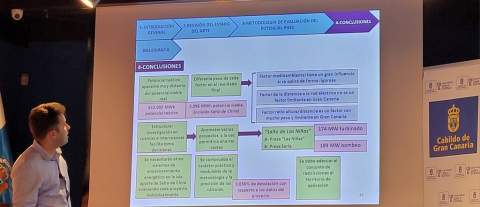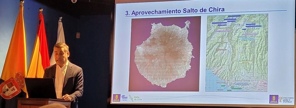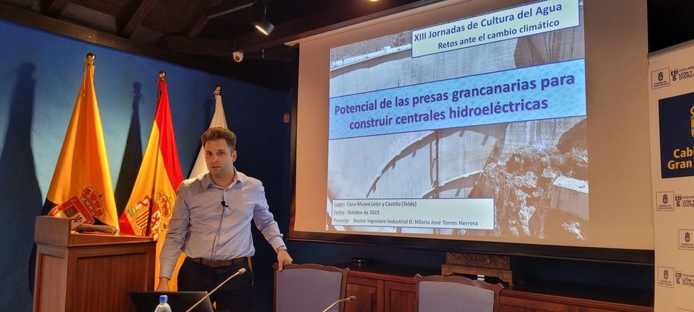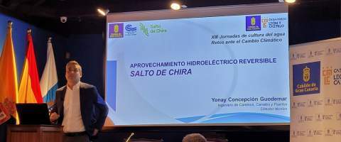 El ingeniero industrial Torres Herrera, especialista en energías renovables, habló sobre el potencial de las presas grancanarias para construir centrales hidroeléctricas. Mientras que Concepción Guodemar, director técnico del Salto Chira-Soria, ahondó en la central hidroeléctrica Chira-Soria.