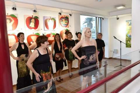 La pintora Saro Armas clausuró este lunes su exposición pictórica 'El jardín de lo posible' con un pase de modelos organizado en colaboración con la Asociación Española contra el Cáncer en el teatro Juan Ramón Jiménez de Telde. El desfile estuvo protagonizado por pacientes oncológicos quienes mostrar los vestidos pintados a mano por la pintora Saro Armas.
