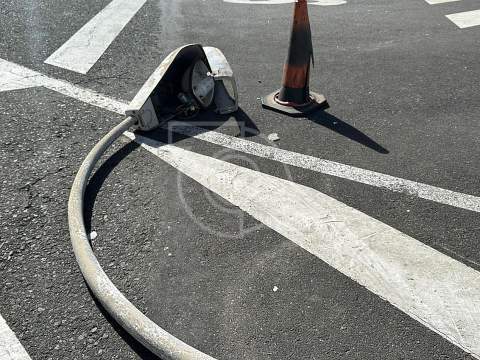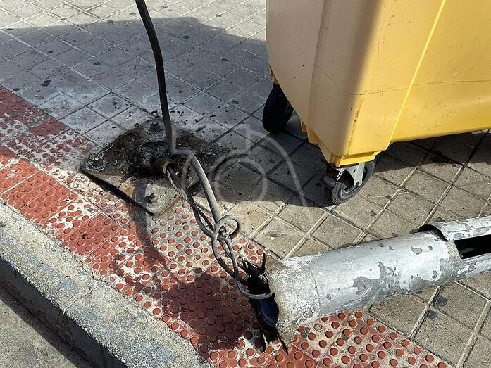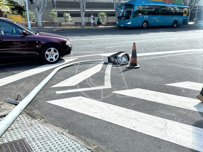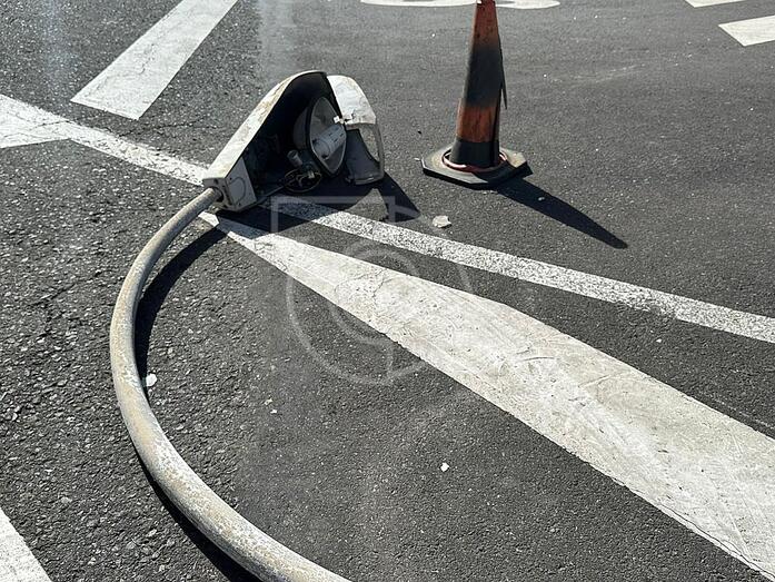 La farola, ubicada en el tramo final de la calle Sor Concepción Suárez Pérez, haciendo esquina con la estación de servicios Shell y junto a un paso de peatones, se partió de su anclaje y se precipitó hacia la acera y el asfalto.