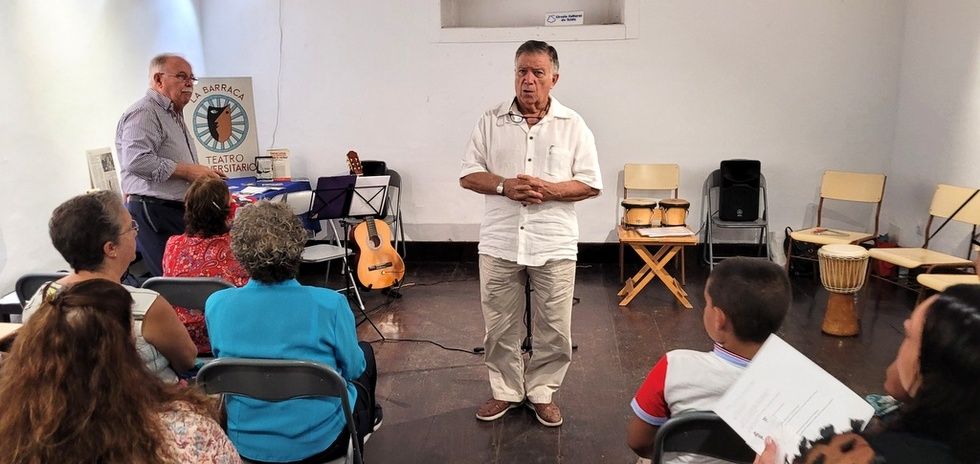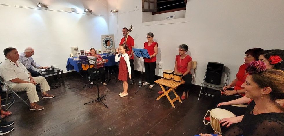Instrumentistas que forman el grupo: Santi Alejandro en el contrabajo, percusionistas, Zeneida Parada, Fayna Guillen, Loli Bauza, (bongó y castañuelas), cantaora, Fefina Santana, en la guitarra Pino Monzón, con la colaboración especial de la bailaora Cristina Matas, dedicada a dar clases en la modalidad didáctica de Flamenco Sport, en la Asociación Punto y Seguido de La Garita. Como aficionados ponemos el alma y la pasión para lograr escenificar este acto. Muchas gracias”.