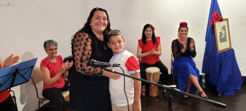 Al Círculo Cultural de Telde y de una manera especial a Juan Santos y a todos los asistentes que nos han honrado con su presencia. Como última actuación cierra el programa, la niña Cayetana Rodríguez que impresiona por su magnífica interpretación de La tarara, coreada y aplaudida por todo el respetable.